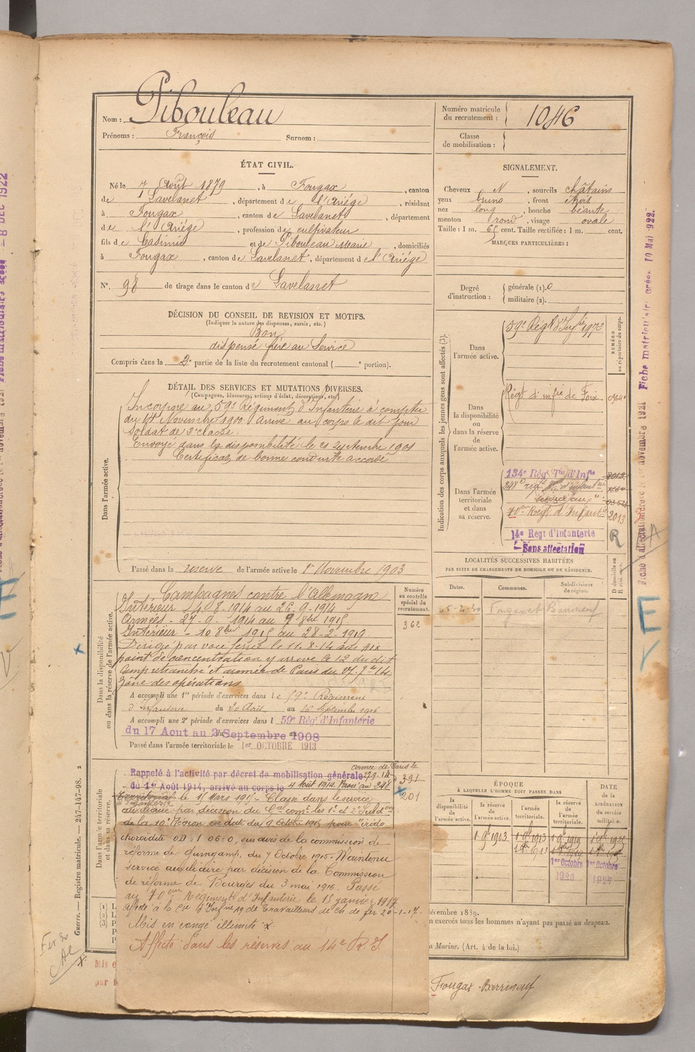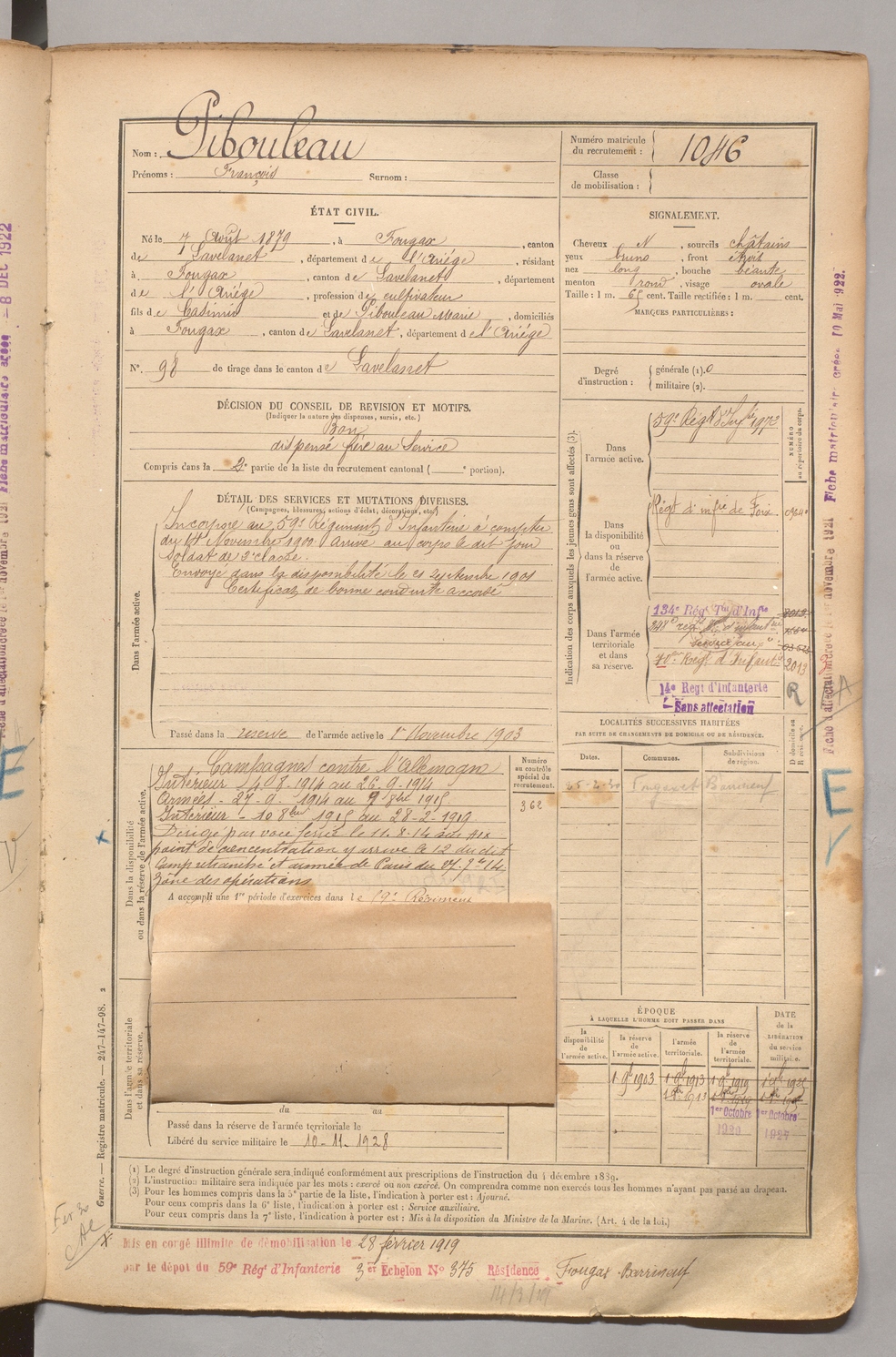 | Pibouleau | François | FOIX | 1 R 458 | 1899 | Fougax-et-Barrineuf | Fougax-et-Barrineuf | 1046 |