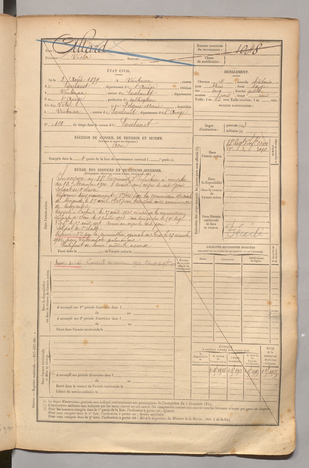 | Allard | Victor | FOIX | 1 R 458 | 1899 | Ventenac | Ventenac | 1048 |