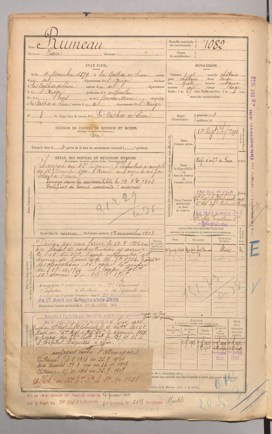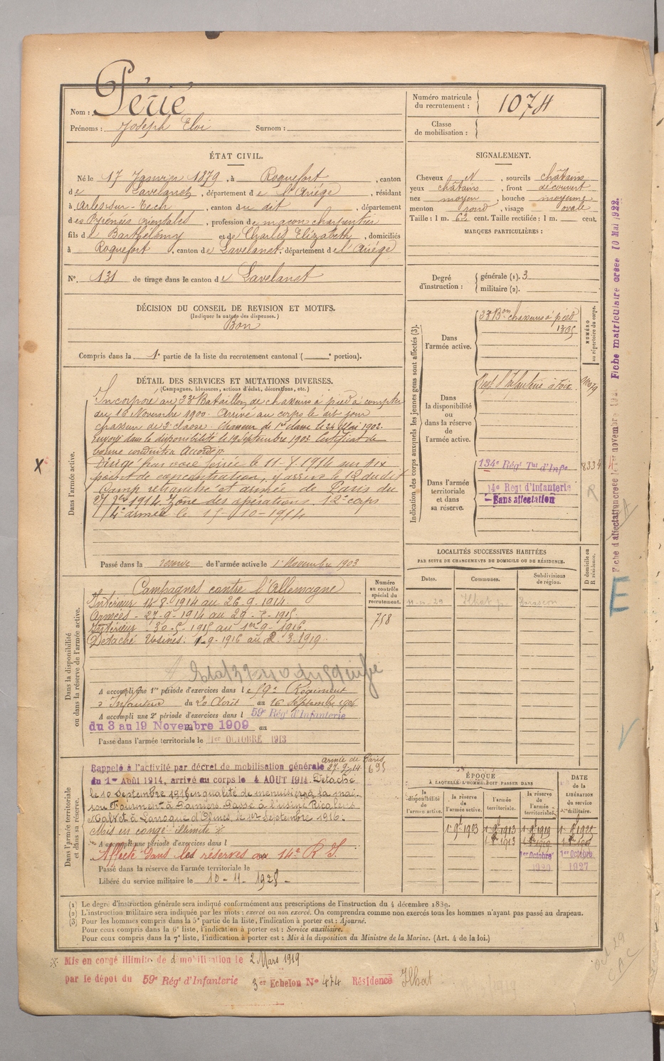 | Périé | Joseph Eloi | FOIX | 1 R 458 | 1899 | Roquefort-les-Cascades | Arles-sur-Tech | 1074 |