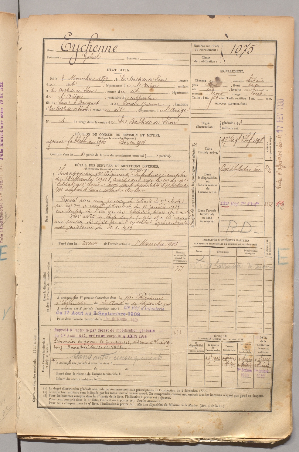 | Eychenne | Gabriel | FOIX | 1 R 458 | 1899 | Bastide-de-Sérou (La) | Bastide-de-Sérou (La) | 1075 |