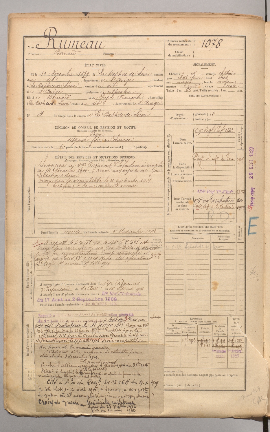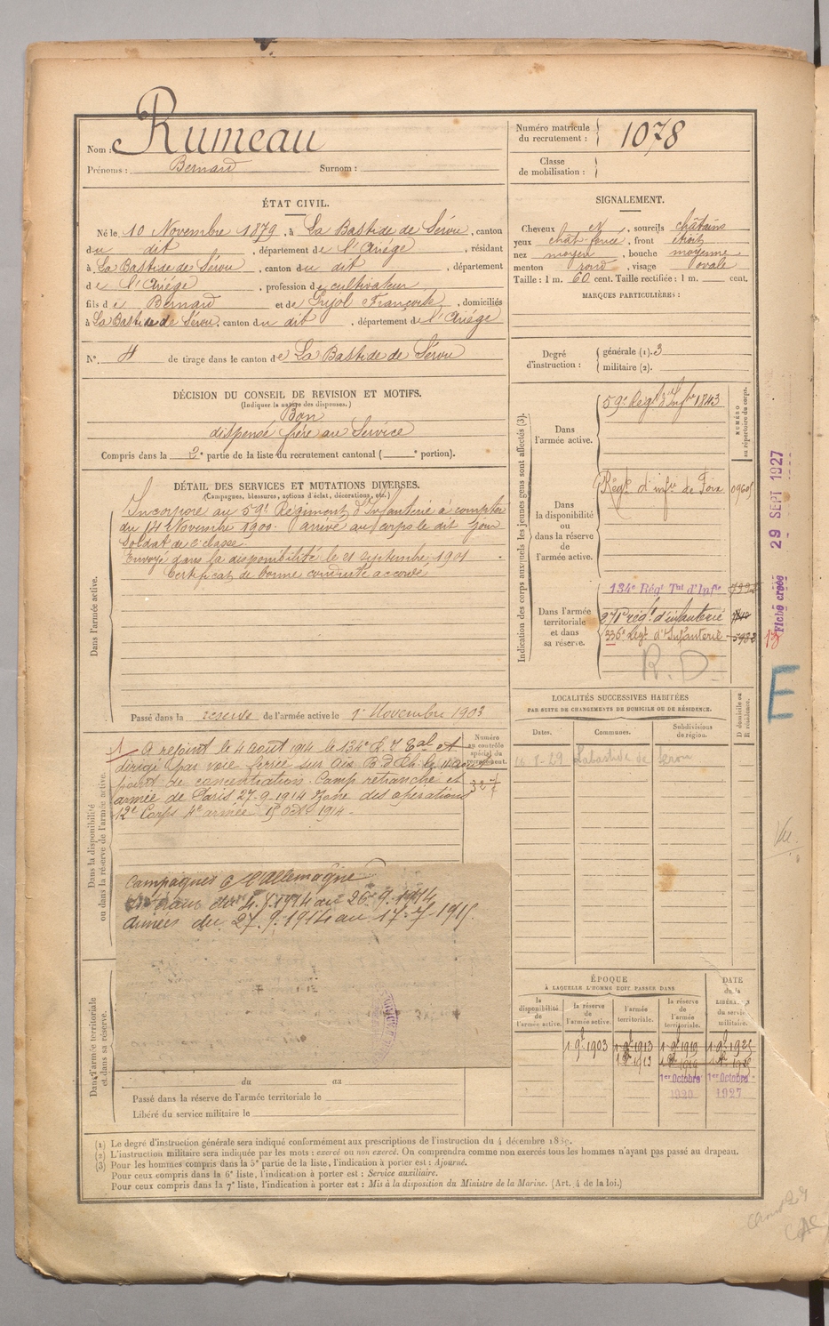 | Rumeau | Bernard | FOIX | 1 R 458 | 1899 | Bastide-de-Sérou (La) | Bastide-de-Sérou (La) | 1078 |