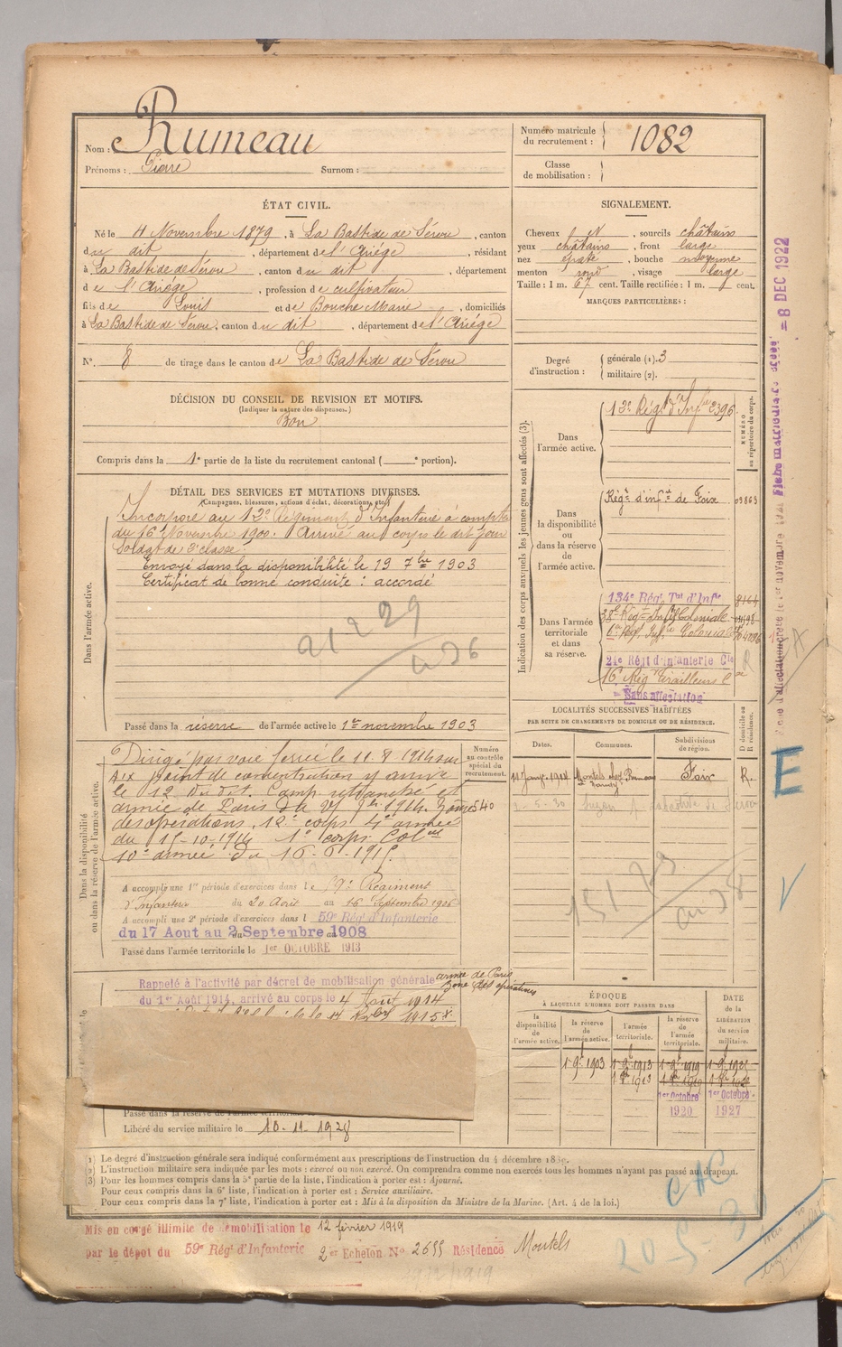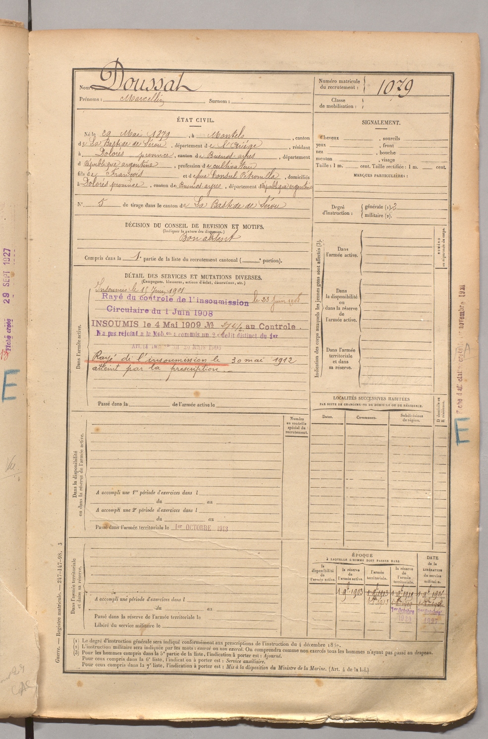 | Doussat | Marcellin | FOIX | 1 R 458 | 1899 | Montels | Dolorès | 1079 |