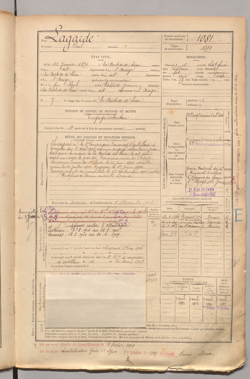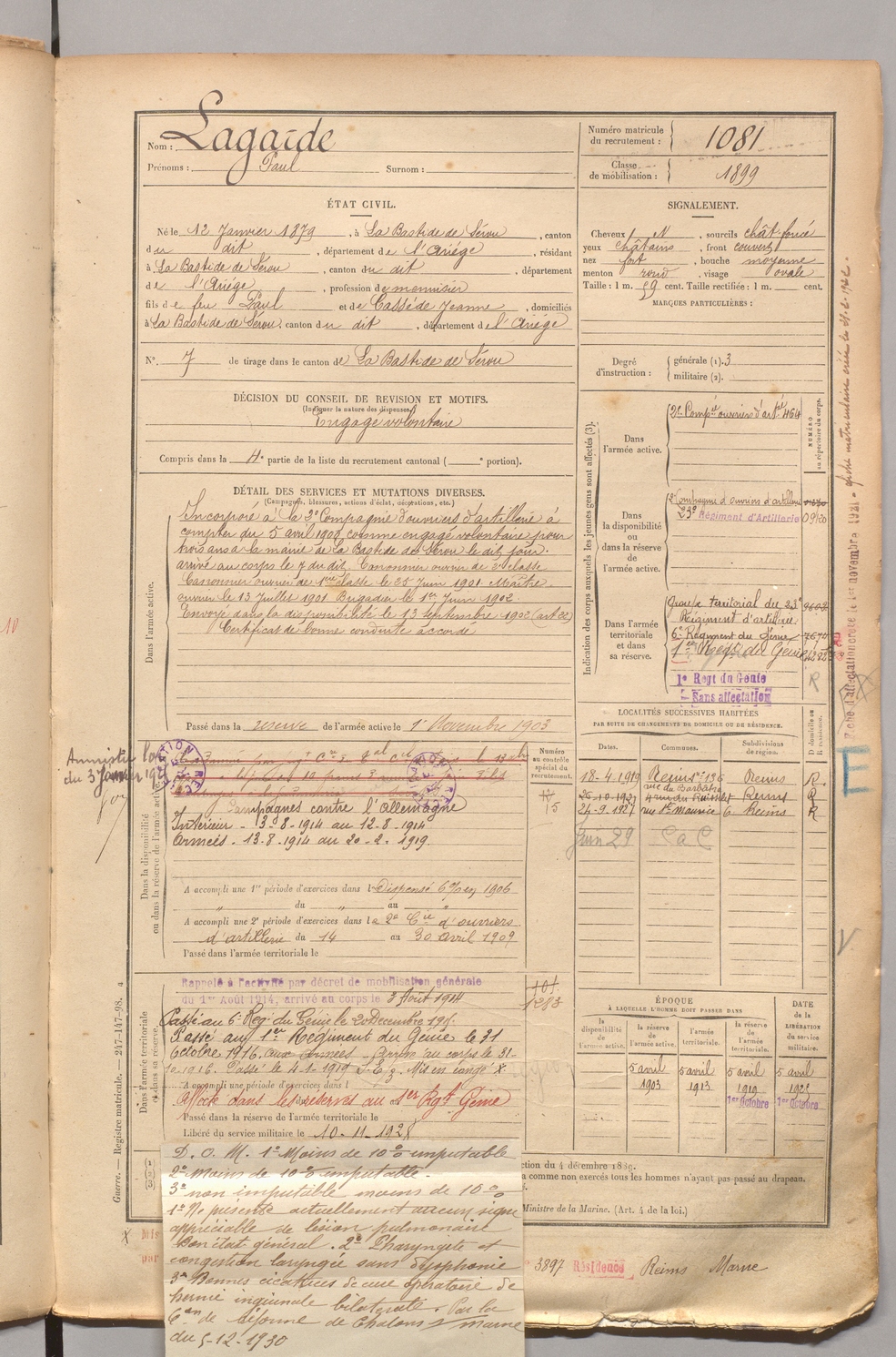 | Lagarde | Paul | FOIX | 1 R 458 | 1899 | Bastide-de-Sérou (La) | Bastide-de-Sérou (La) | 1081 |