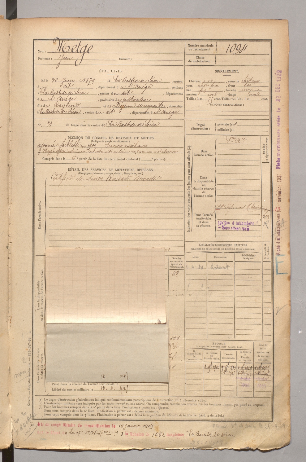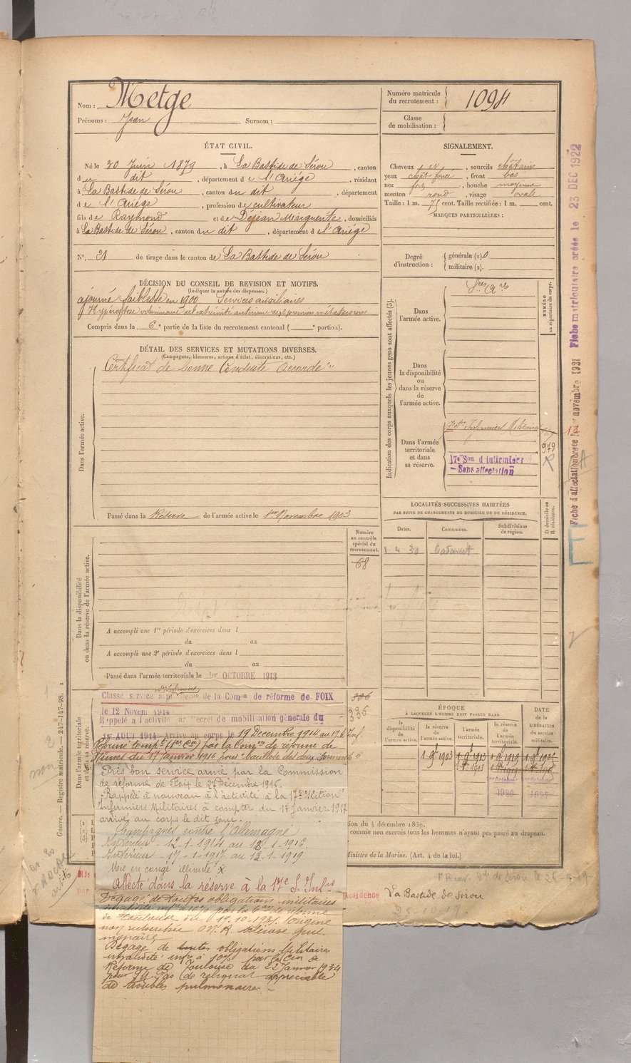 | Metge | Jean | FOIX | 1 R 458 | 1899 | Bastide-de-Sérou (La) | Bastide-de-Sérou (La) | 1094 |