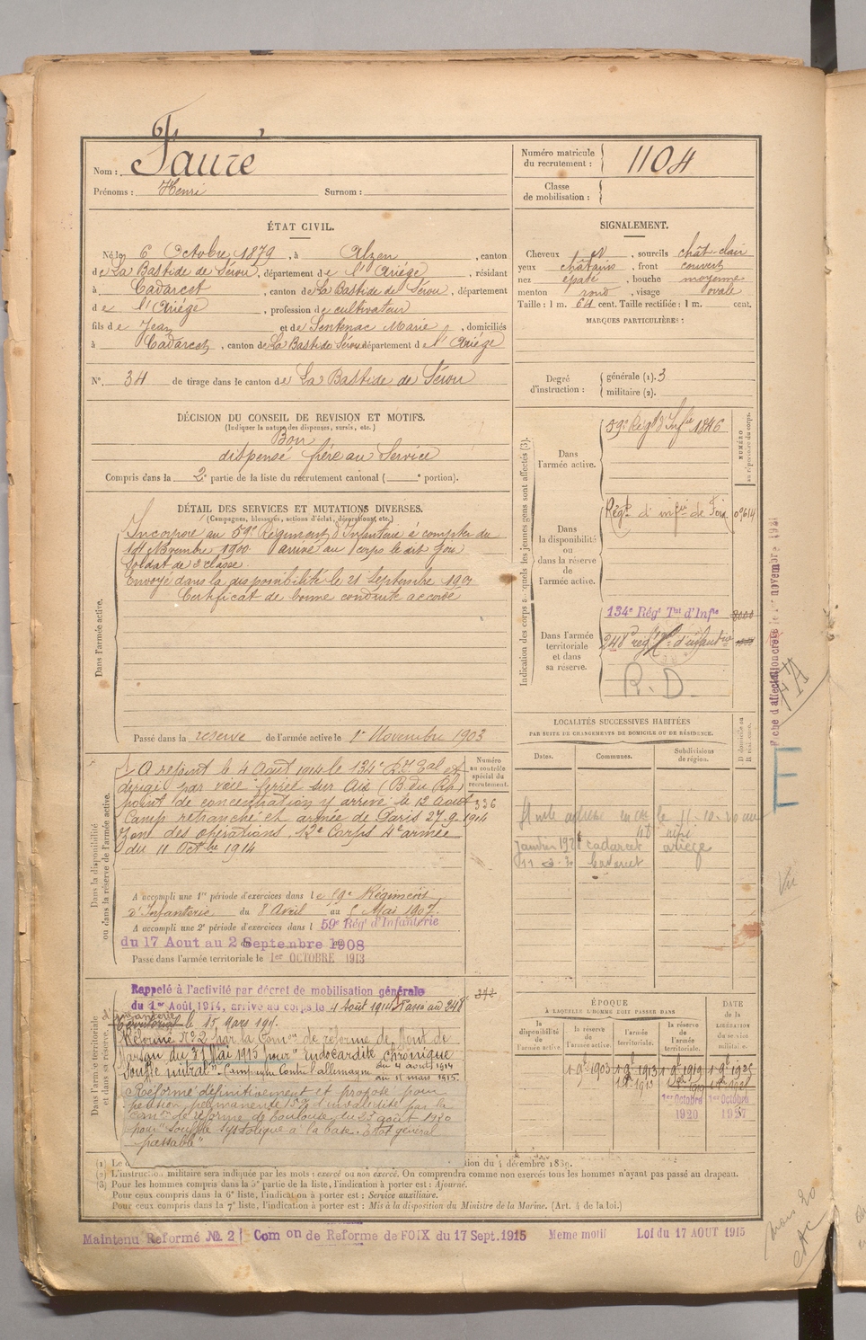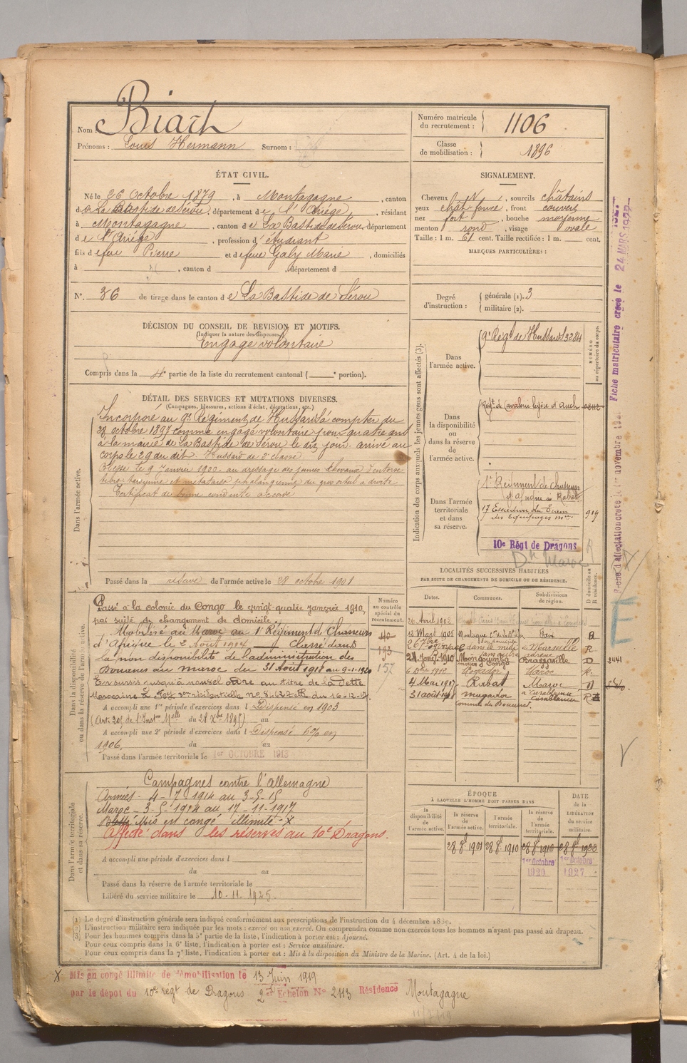 | Biart | Louis Hermann | FOIX | 1 R 458 | 1899 | Montagagne | Montagagne | 1106 |