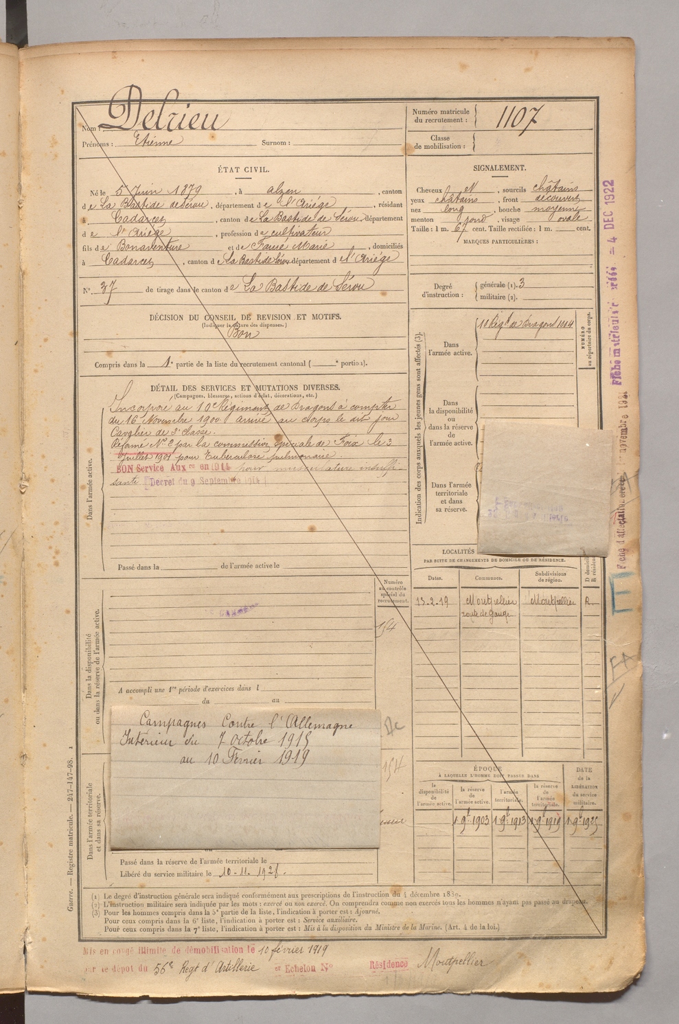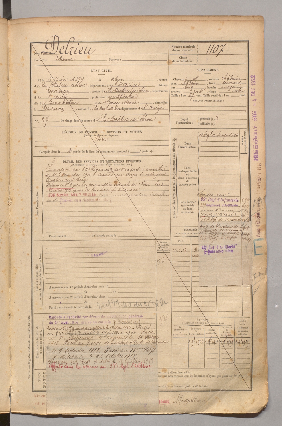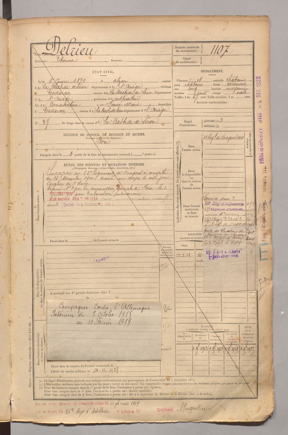 | Delrieu | Etienne | FOIX | 1 R 458 | 1899 | Alzen | Cadarcet | 1107 |