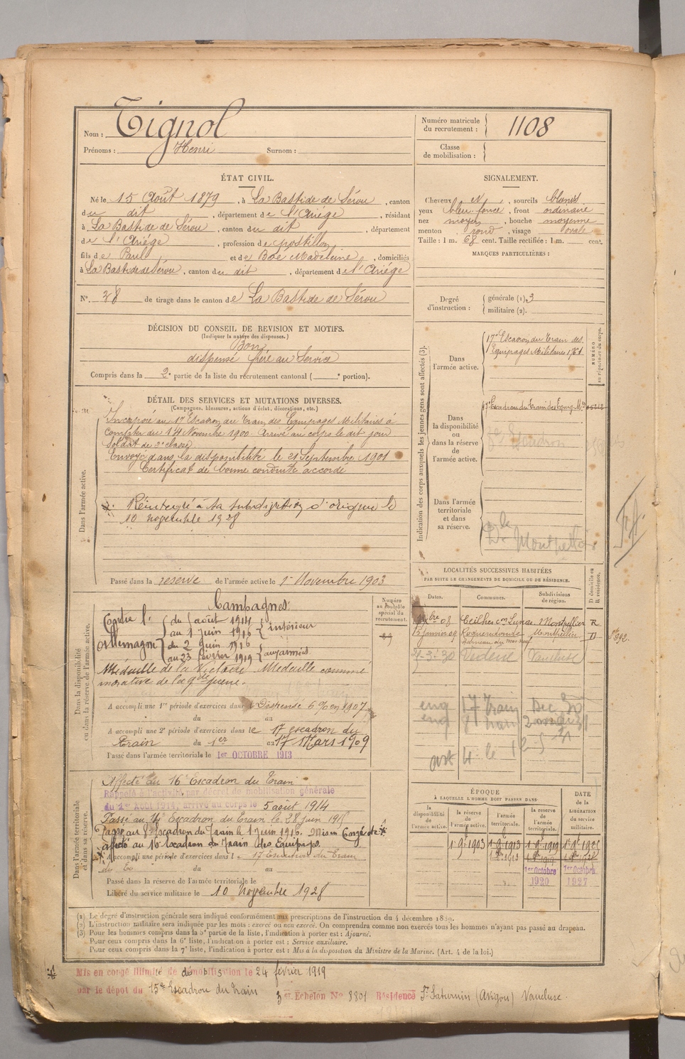 | Tignol | Henri | FOIX | 1 R 458 | 1899 | Bastide-de-Sérou (La) | Bastide-de-Sérou (La) | 1108 |