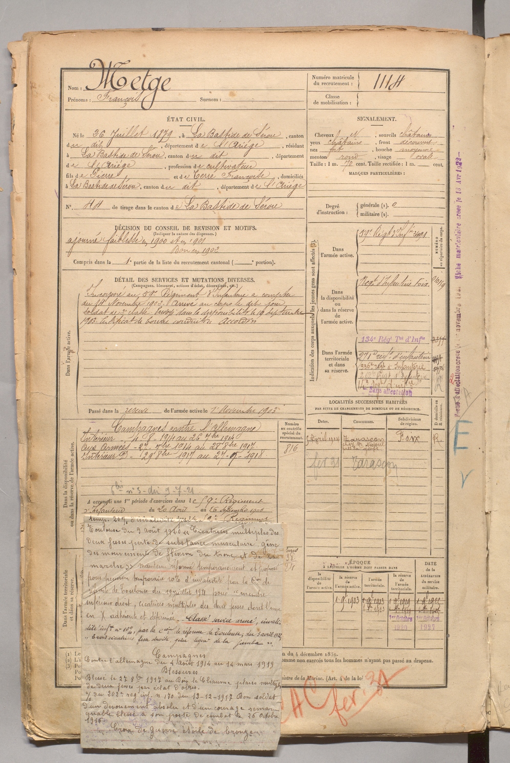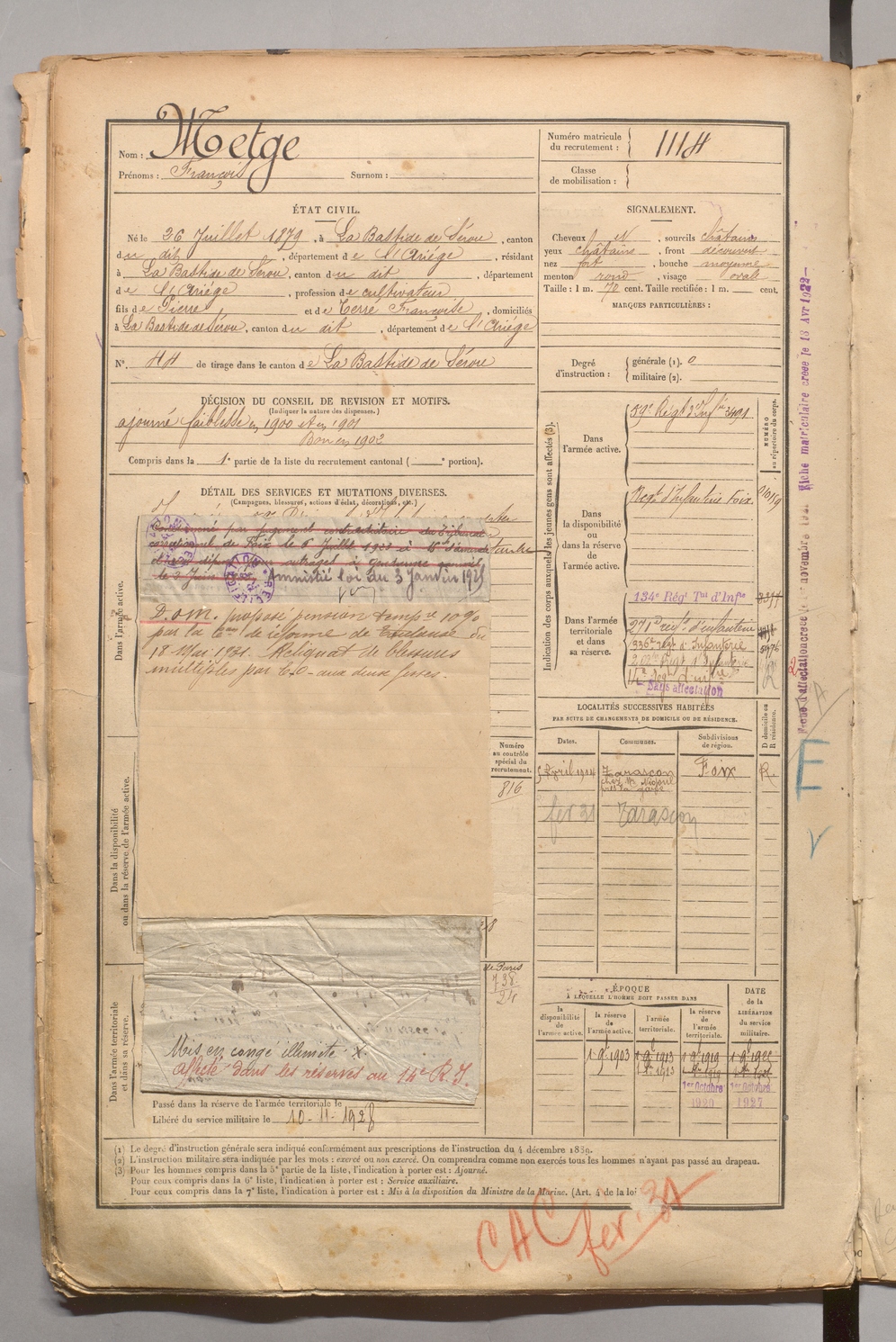 | Metge | François | FOIX | 1 R 458 | 1899 | Bastide-de-Sérou (La) | Bastide-de-Sérou (La) | 1114 |