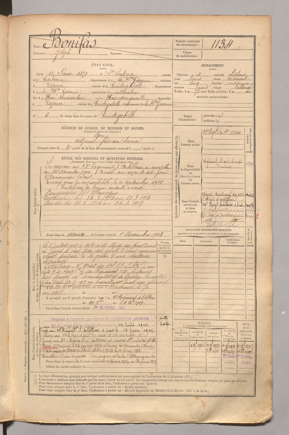 | Bonifas | Joseph | FOIX | 1 R 458 | 1899 | Saint-Sulpice | Esperce | 1134 |