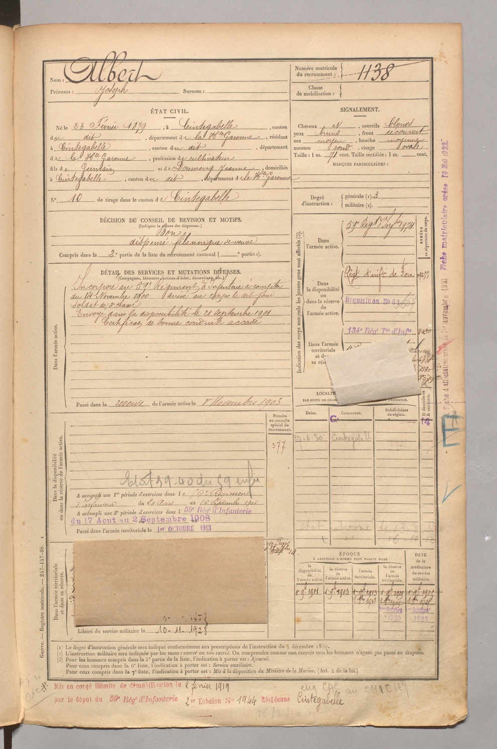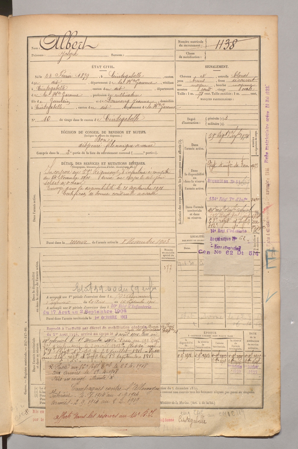 | Albert | Joseph | FOIX | 1 R 458 | 1899 | Cintegabelle | Cintegabelle | 1138 |