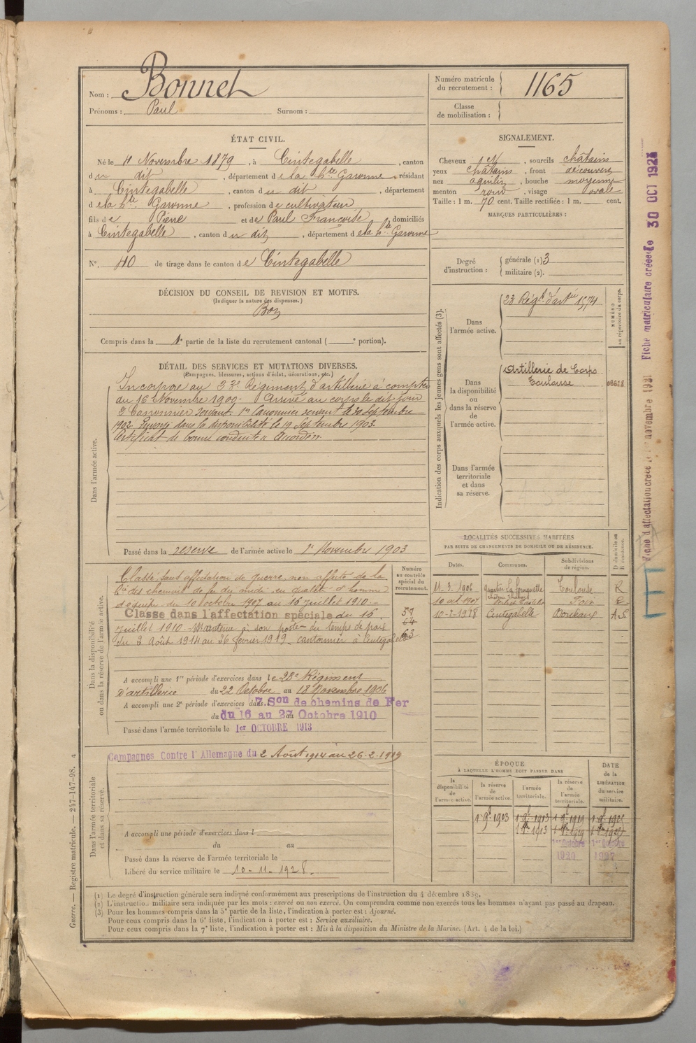 | Bonnet | Paul | FOIX | 1 R 458 | 1899 | Cintegabelle | Cintegabelle | 1165 |