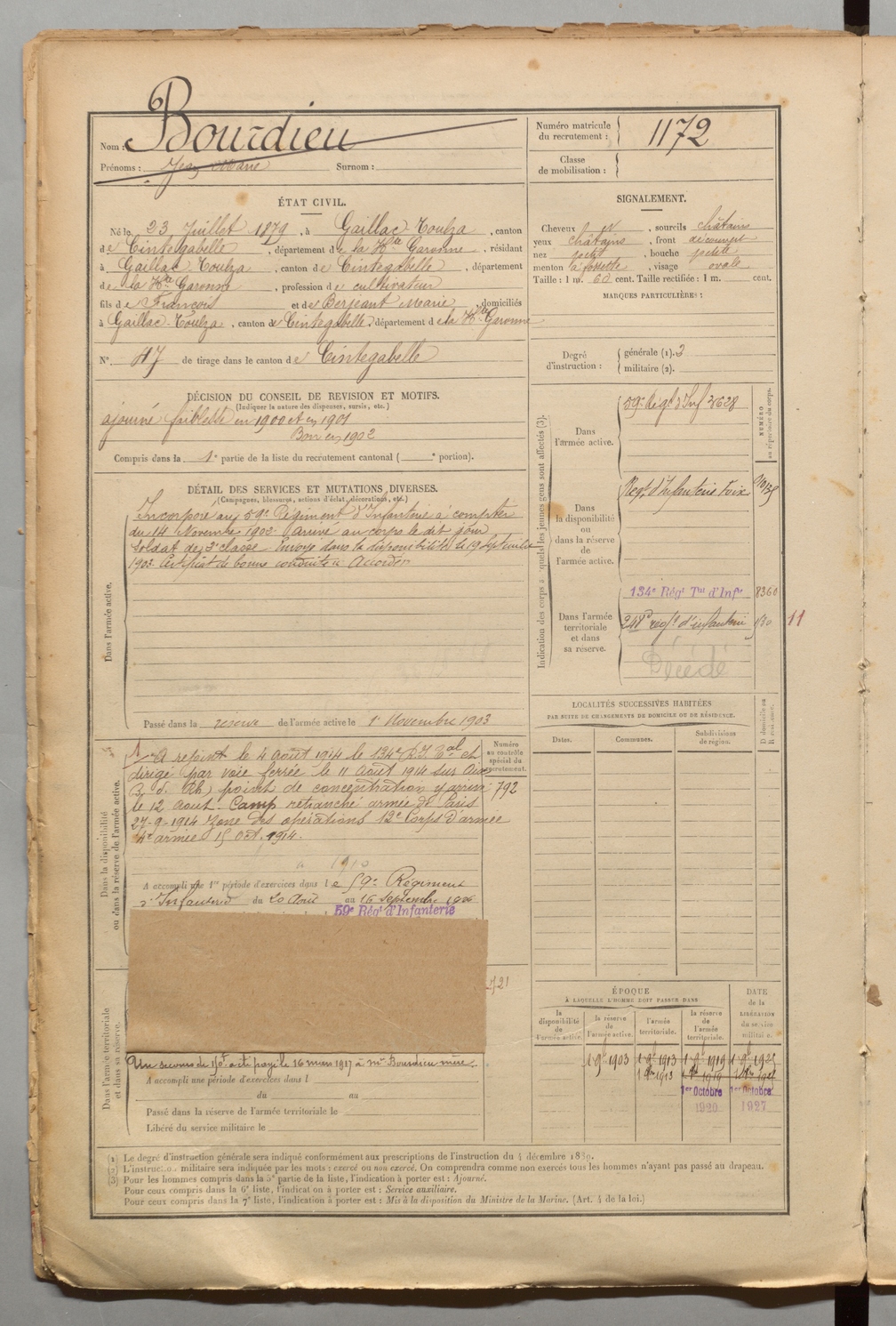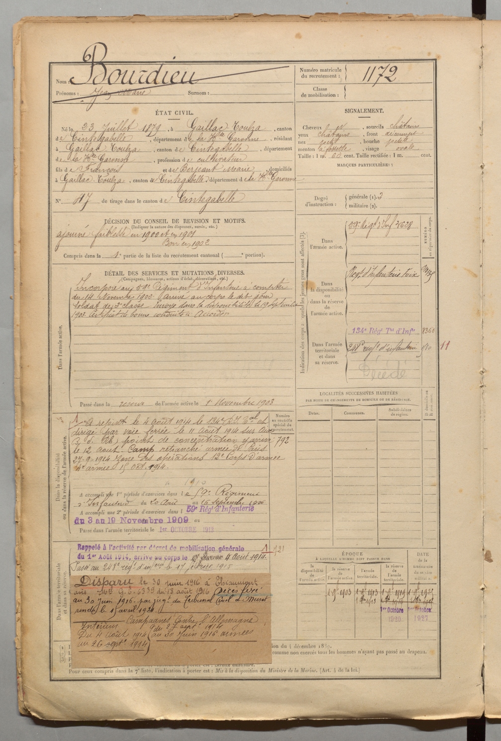 | Bourdieu | Jean Marie | FOIX | 1 R 458 | 1899 | Gaillac-Toulza | Gaillac-Toulza | 1172 |