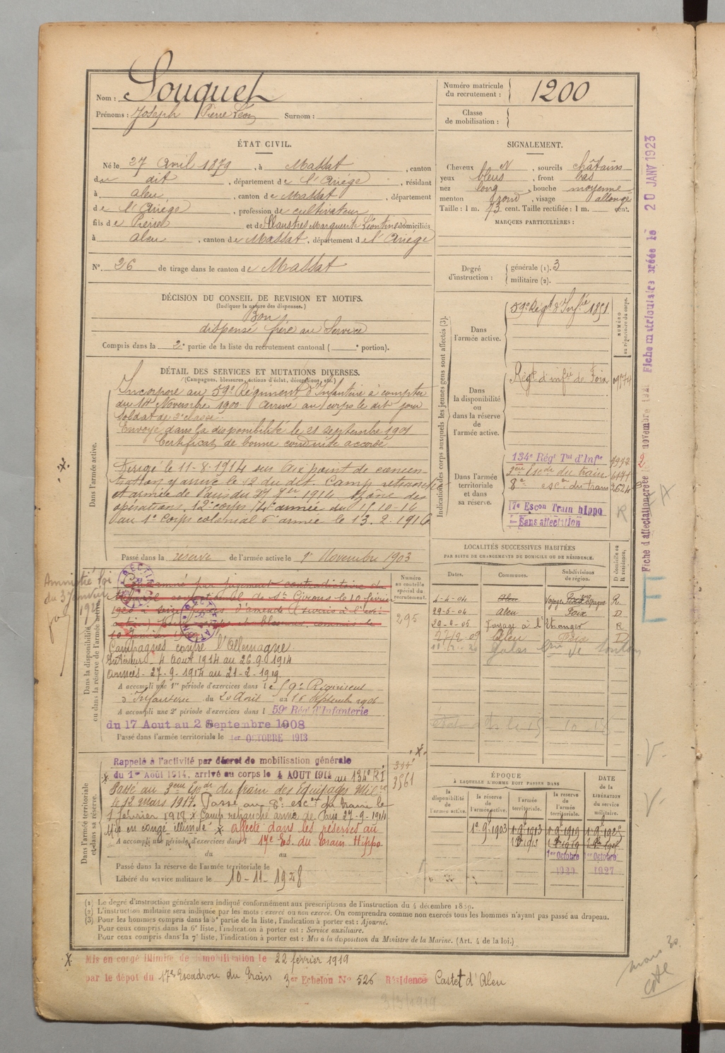 | Souquet | Joseph Pierre Léon | FOIX | 1 R 458 | 1899 | Massat | Aleu | 1200 |
