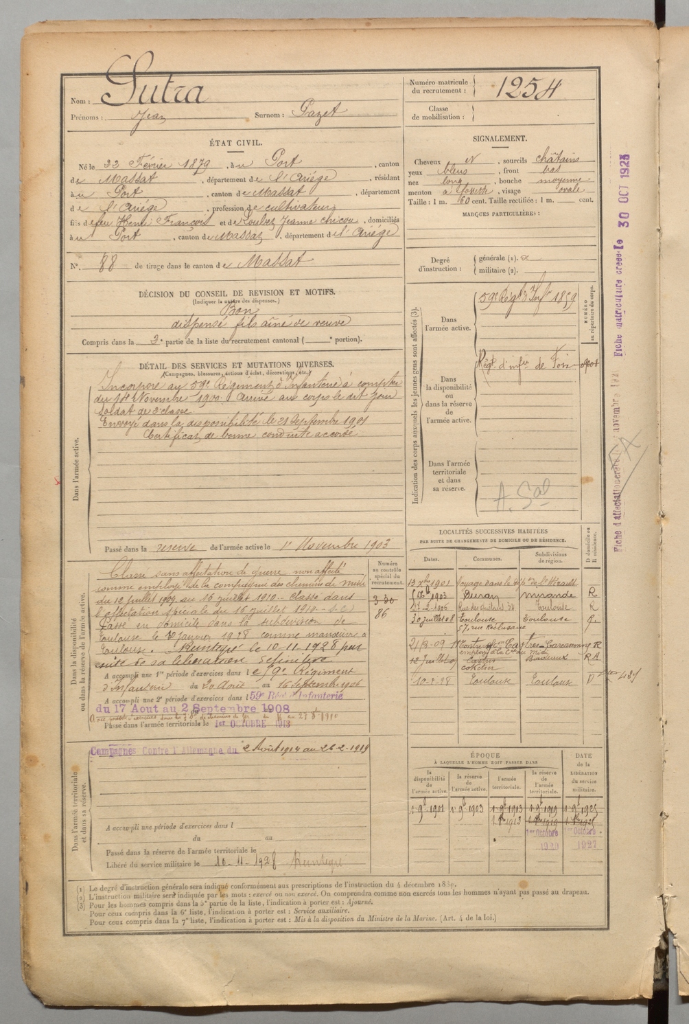 | Sutra | Jean dit Pazet | FOIX | 1 R 458 | 1899 | Port (Le) | Port (Le) | 1254 |
