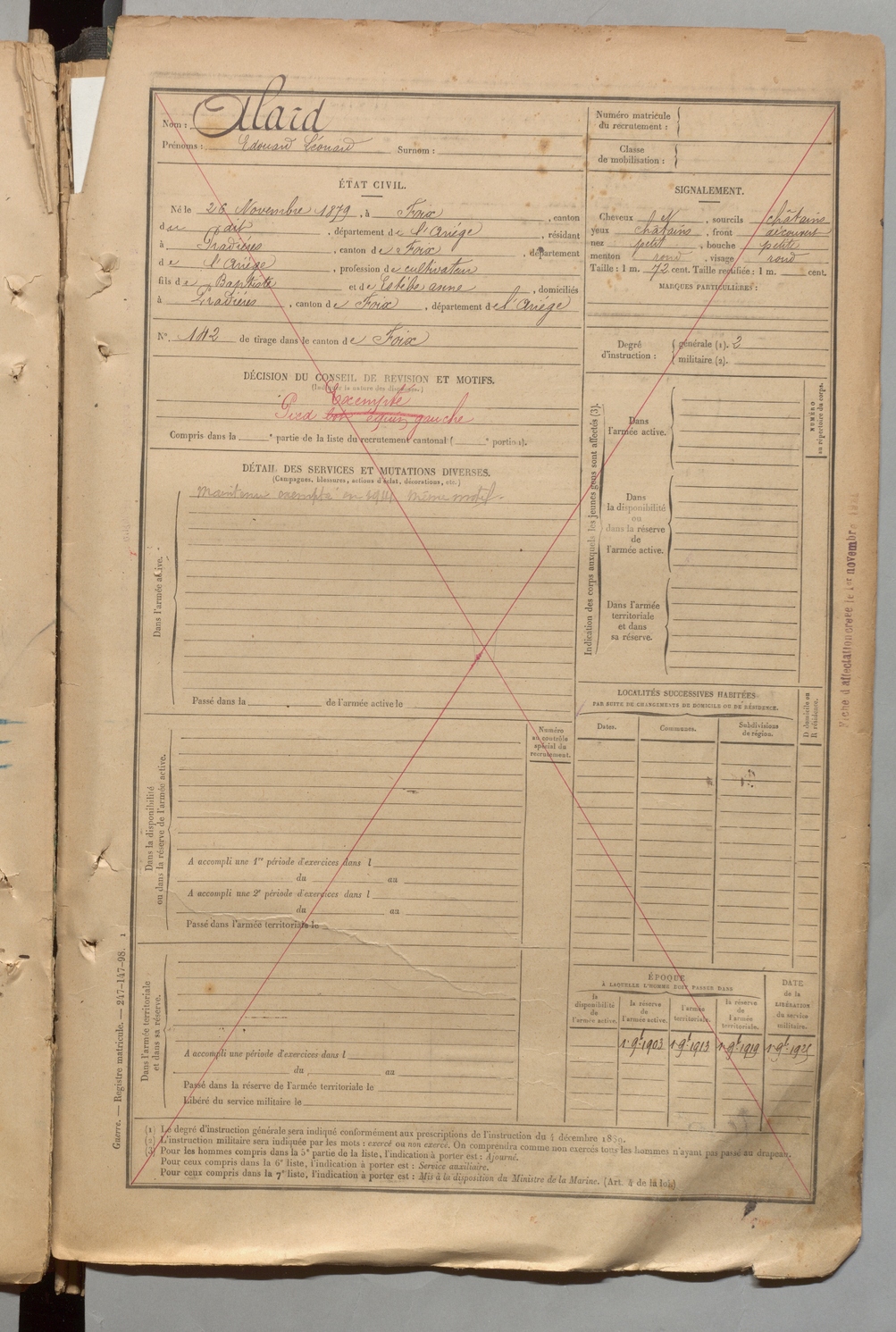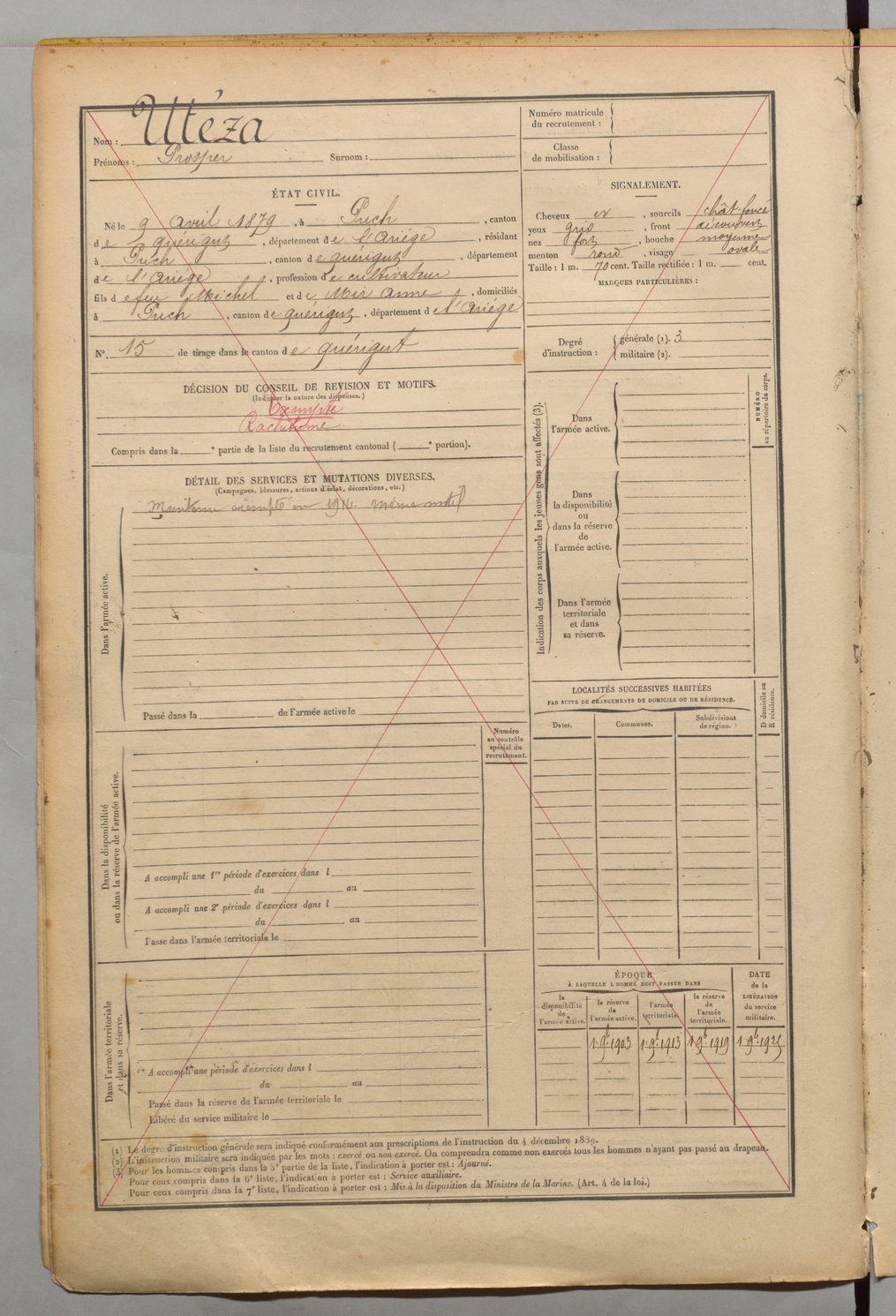 | Alard | Edouard Léonard | FOIX | 1 R 457 | 1899 | Foix | Pradières | 3030 |