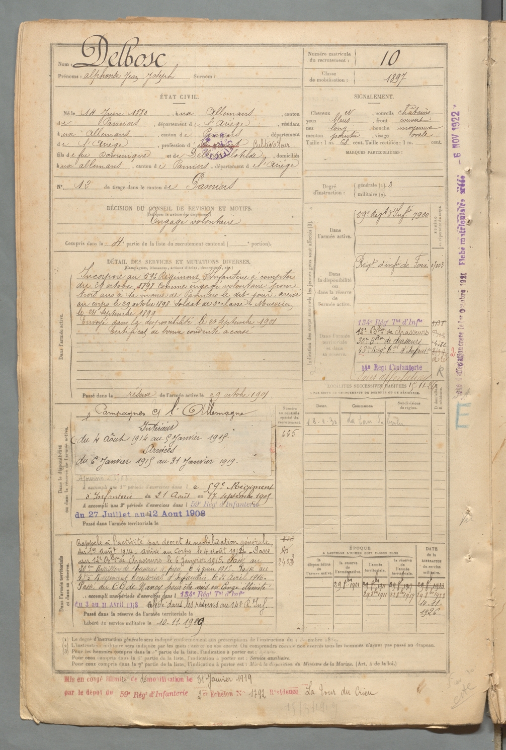 | Delbosc | Alphonse Jean Joseph | FOIX | 129 W 2 | 1900 | Les Allemans | Les Allemans | 10 |