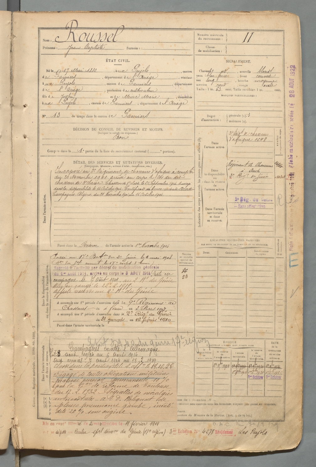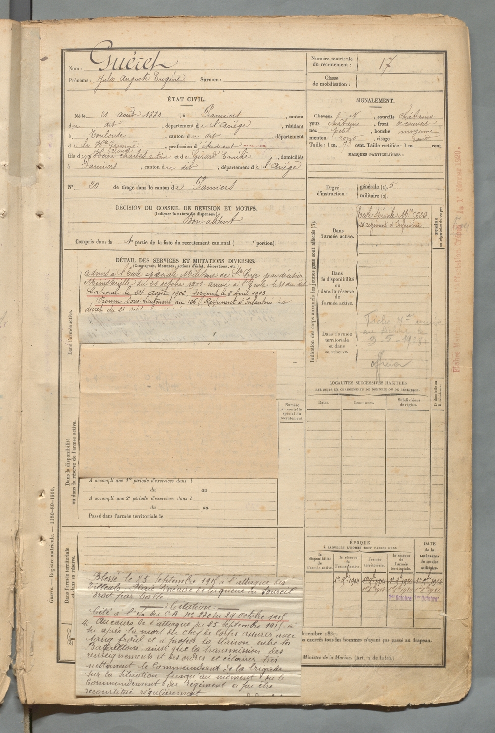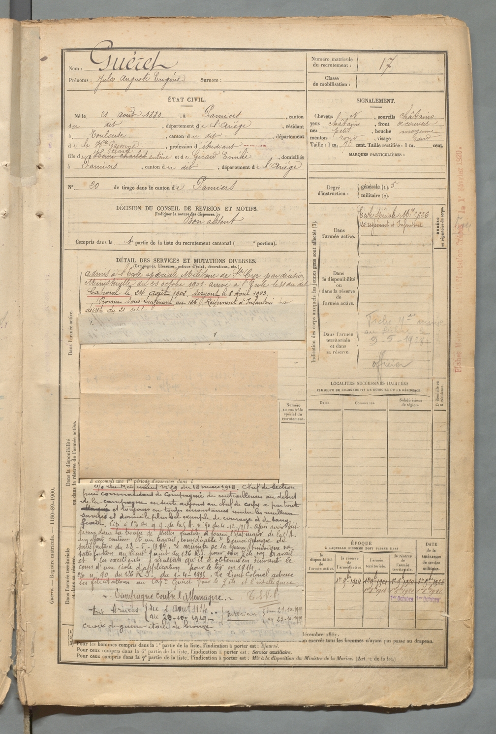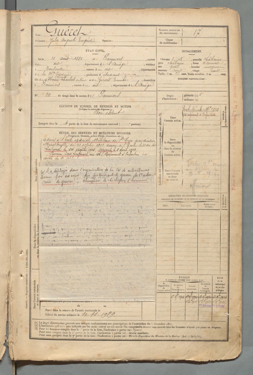 | Guéret | Jules Auguste Eugène | FOIX | 129 W 2 | 1900 | Pamiers | Toulouse | 17 |