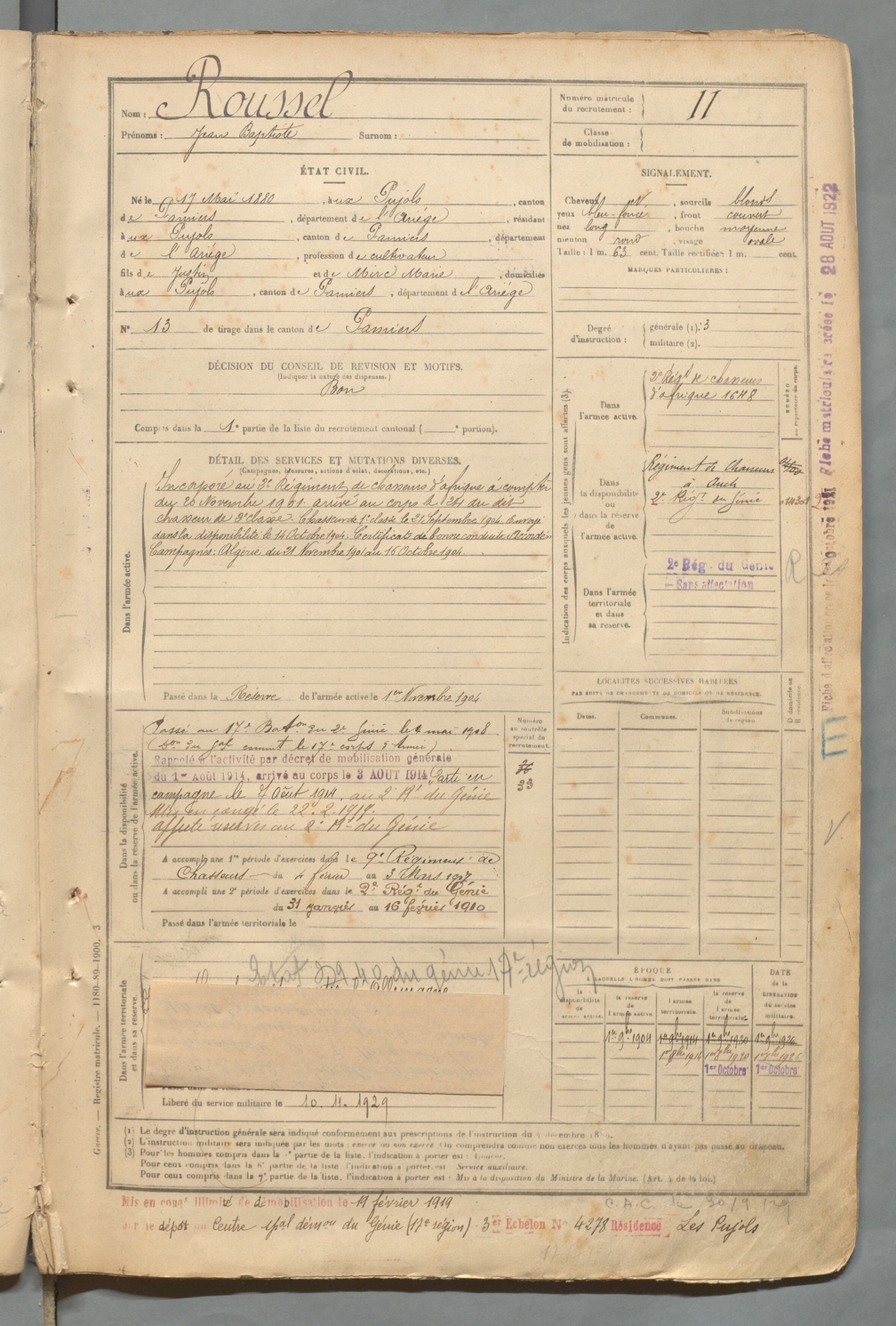 | Roussel | Jean Baptiste | FOIX | 129 W 2 | 1900 | Pujols (les) | Pujols (les) | 11 |