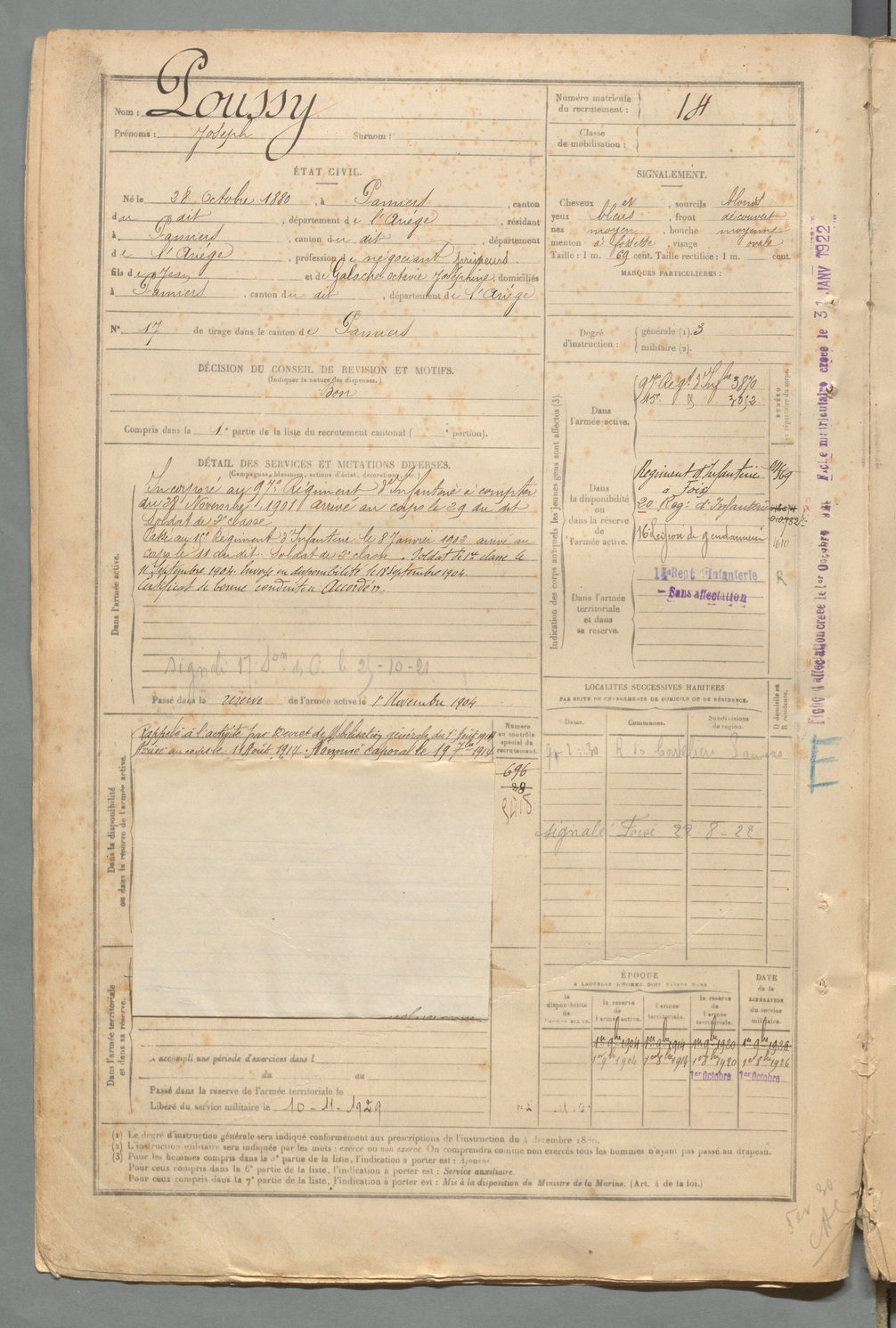 | Poussy | Joseph | FOIX | 129 W 2 | 1900 | Pamiers | Pamiers | 14 |