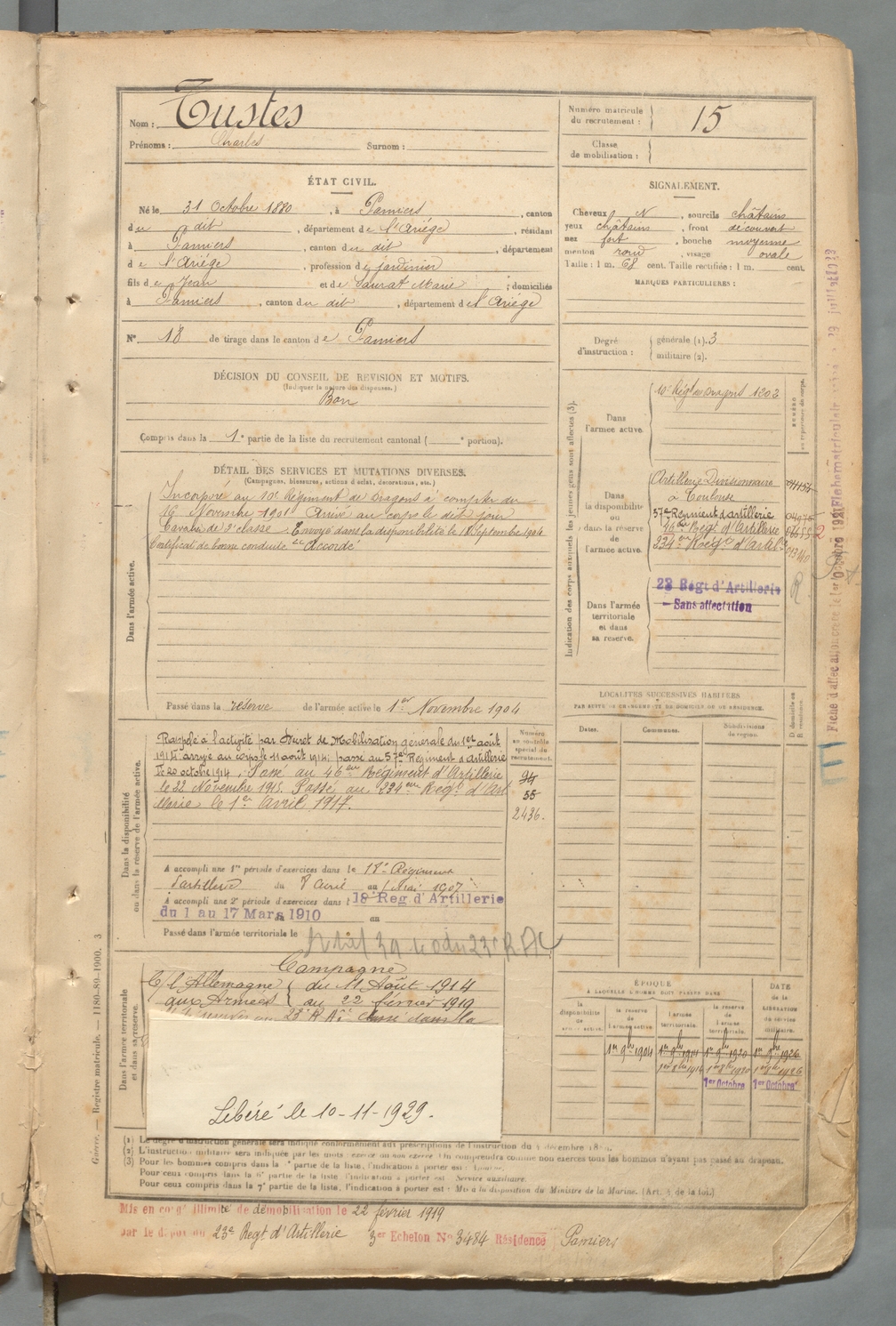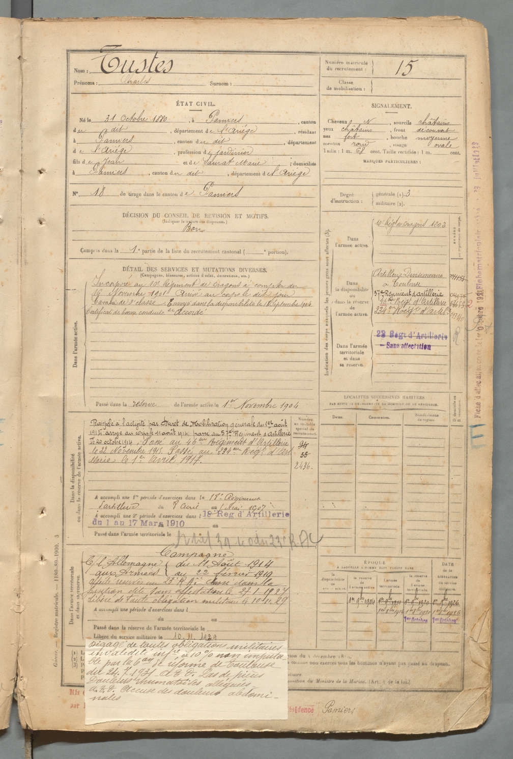 | Tustes | Charles | FOIX | 129 W 2 | 1900 | Pamiers | Pamiers | 15 |