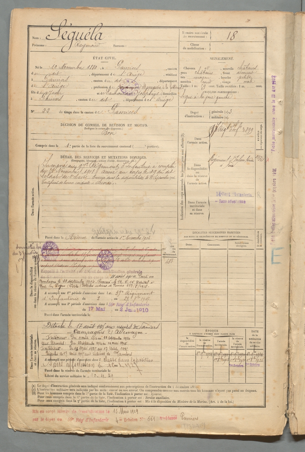 | Séguéla | Raymond | FOIX | 129 W 2 | 1900 | Pamiers | Pamiers | 18 |