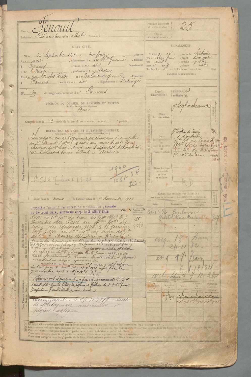 | Fenouil | Frédéric Alexandre Albert | FOIX | 129 W 2 | 1900 | Toulouse | Pamiers | 25 |