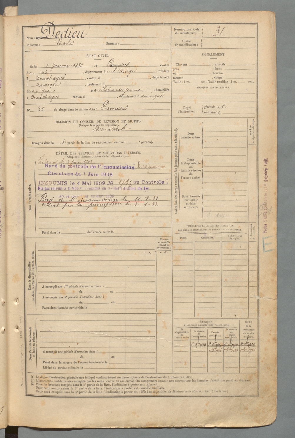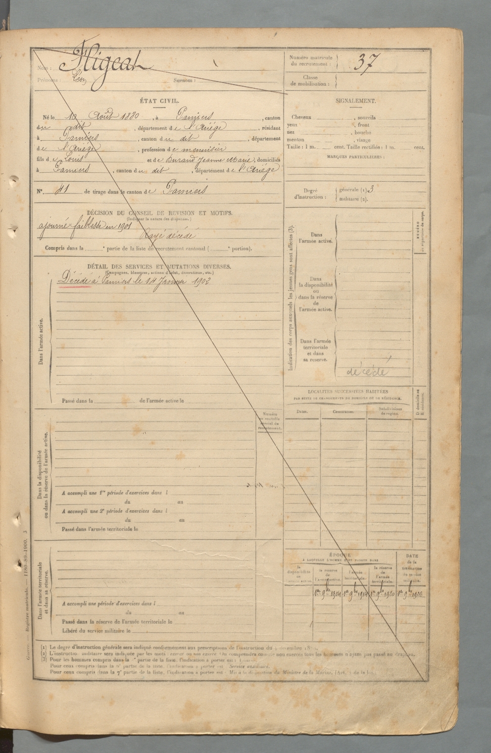 | Fligeat | Léon | FOIX | 129 W 2 | 1900 | Pamiers | Pamiers | 37 |