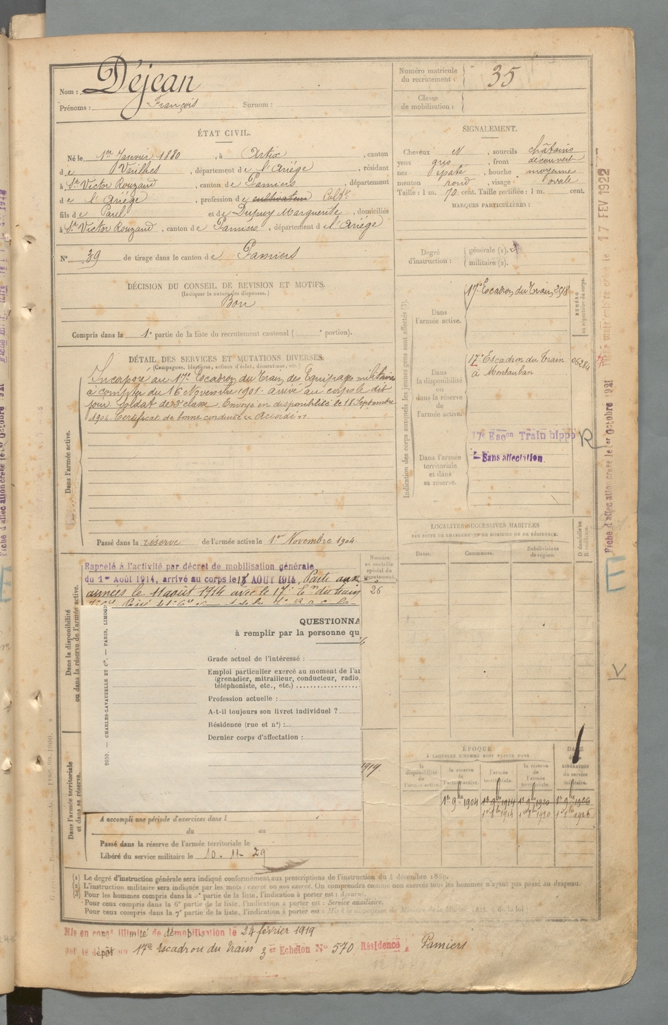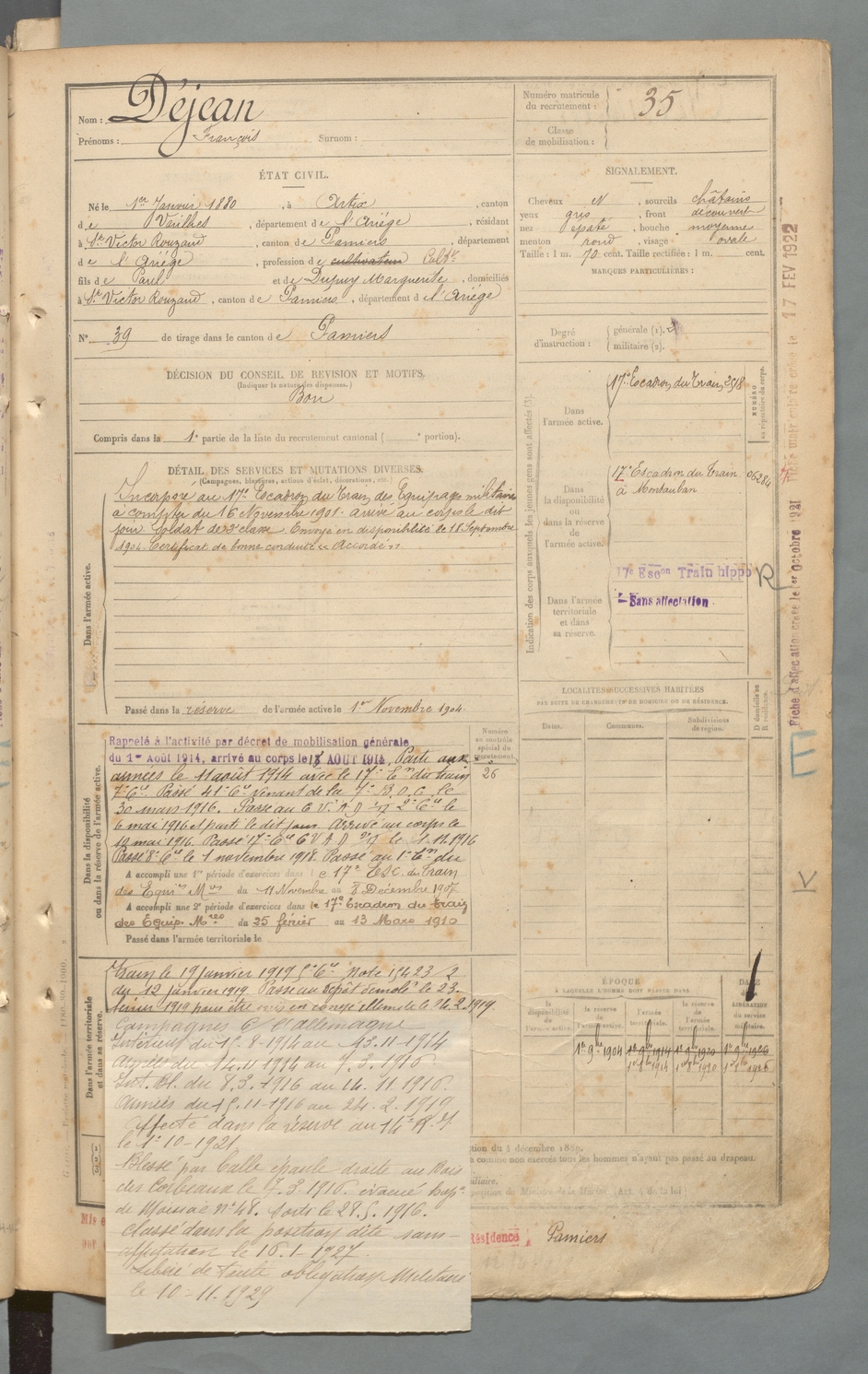 | Déjean | François | FOIX | 129 W 2 | 1900 | Artix | Saint-Victor-Rouzaud | 35 |