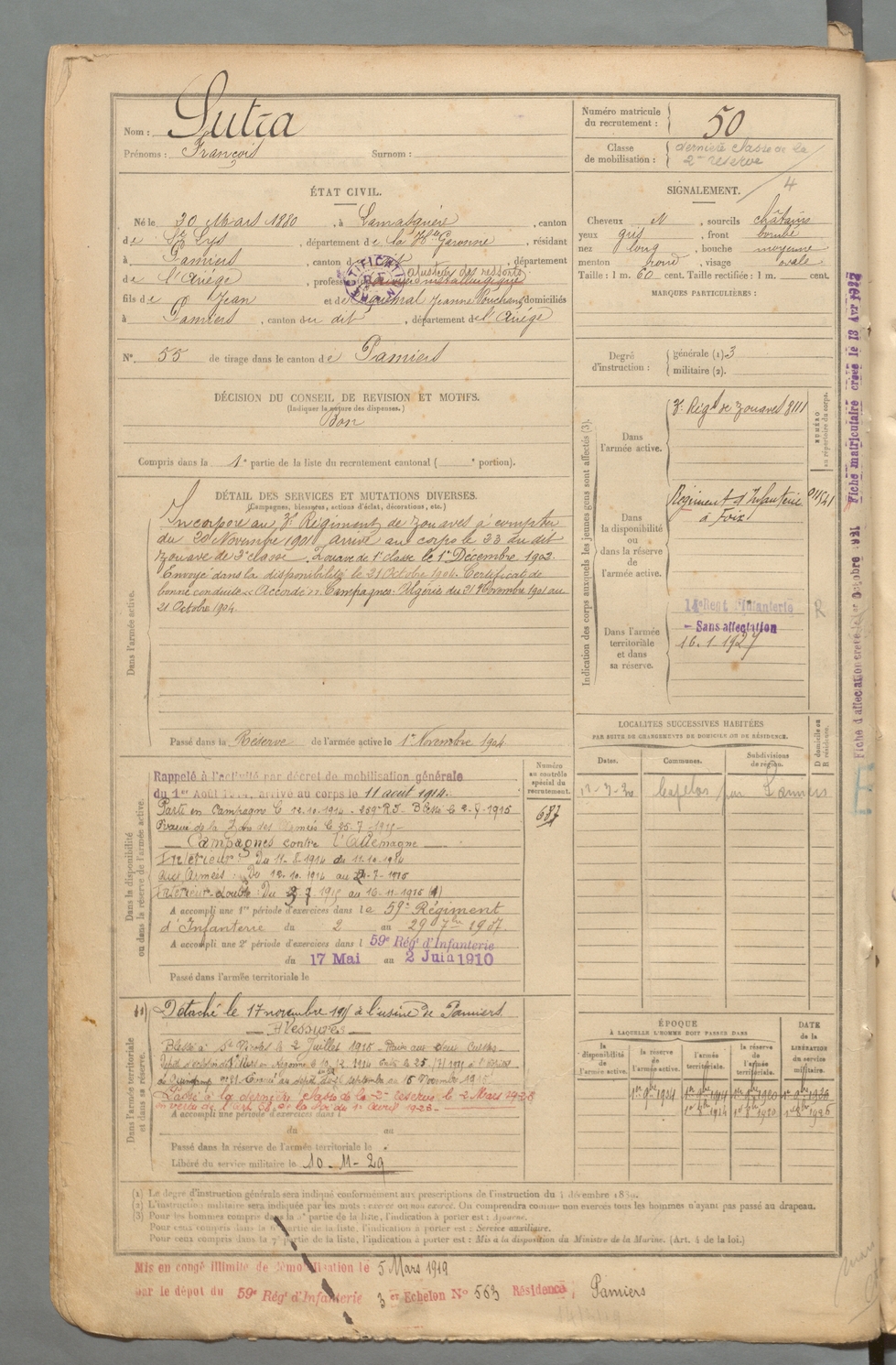 | Sutra | François | FOIX | 129 W 2 | 1900 | Lamasquère | Pamiers | 50 |