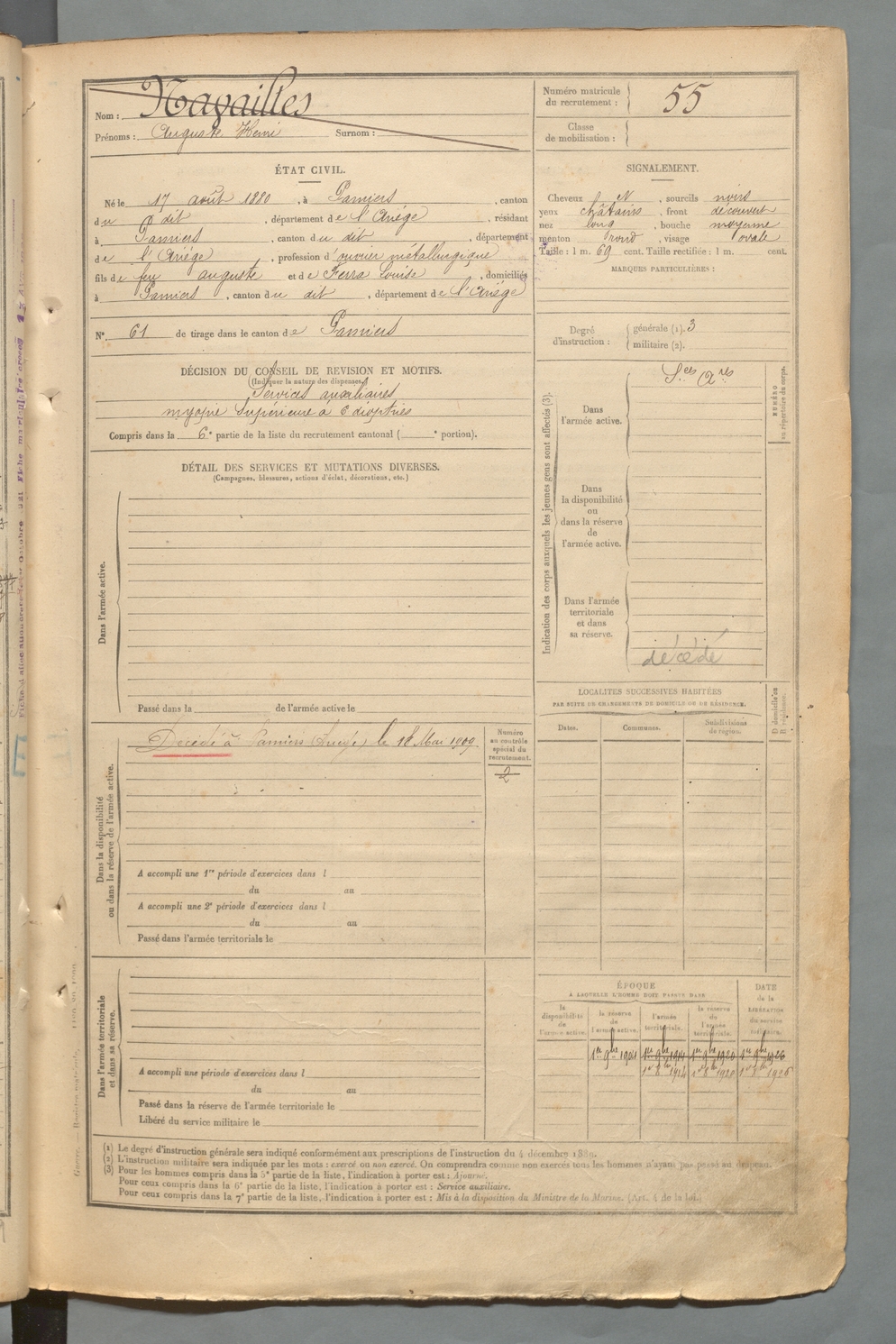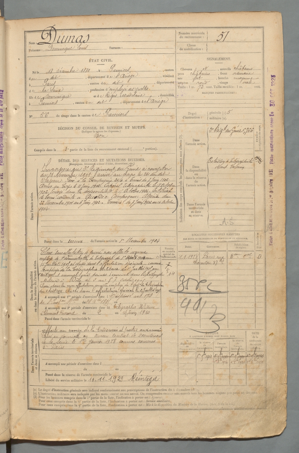 | Dumas | Dominique Louis | FOIX | 129 W 2 | 1900 | Pamiers | Paris | 51 |