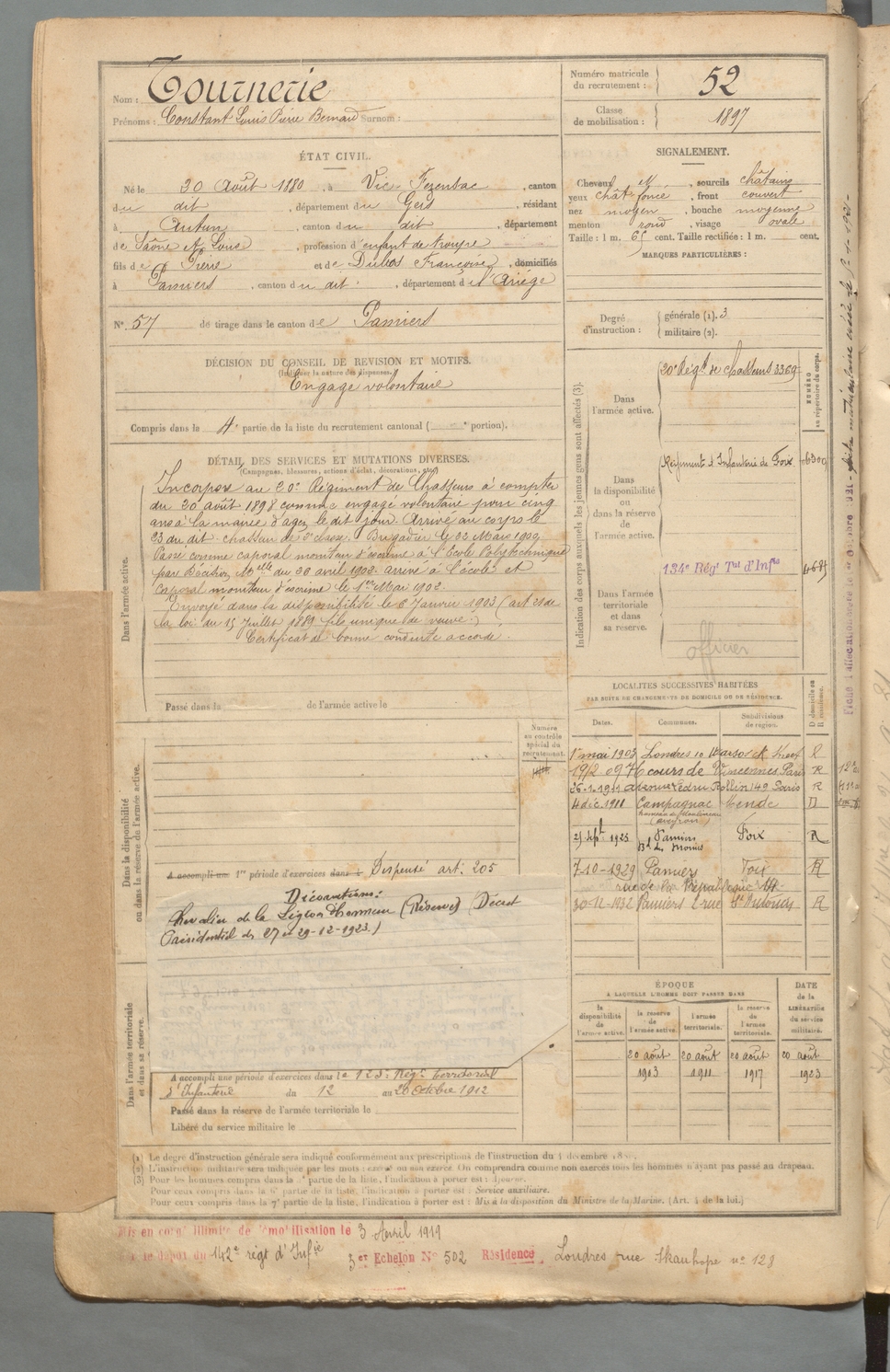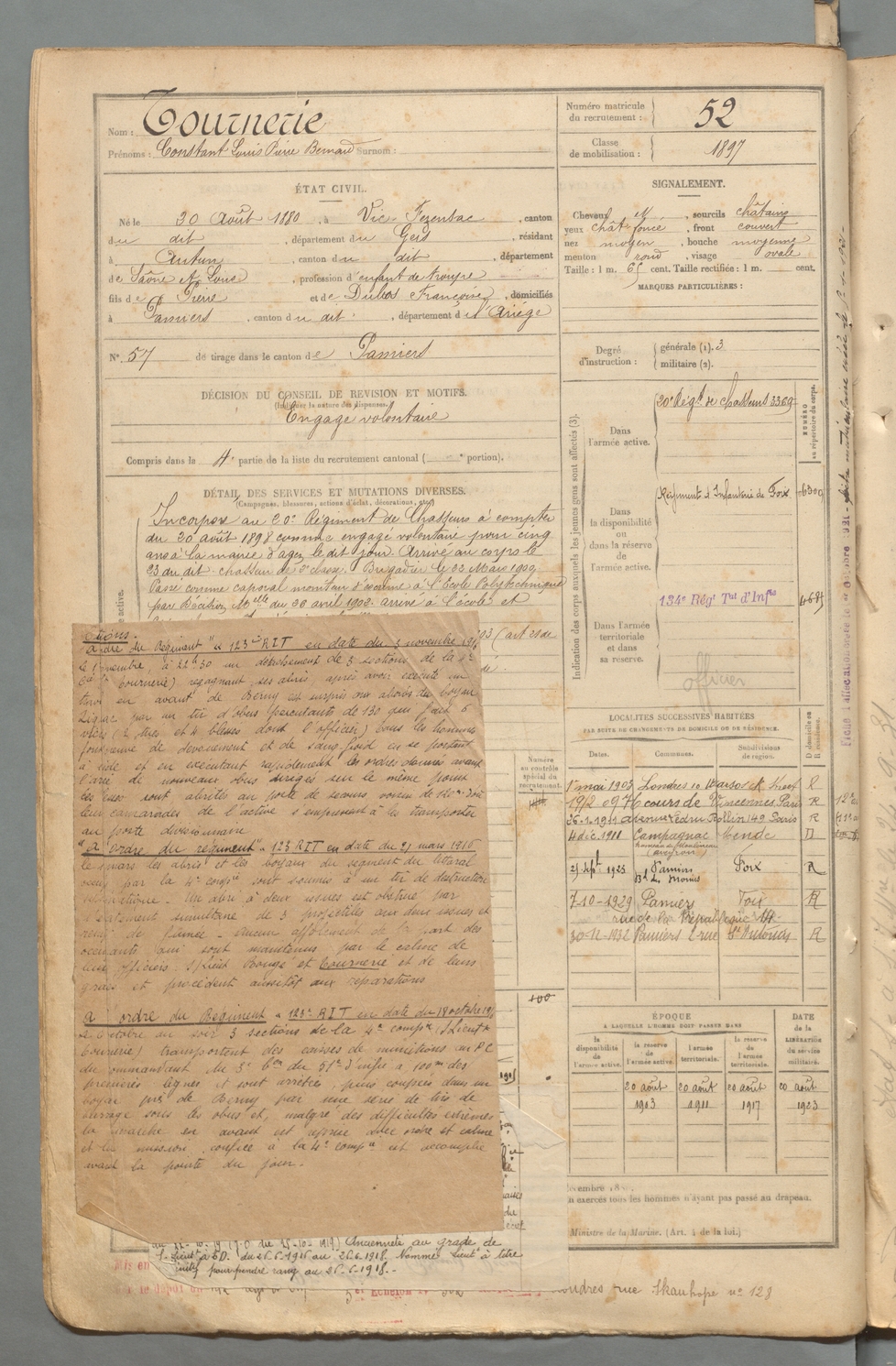 | Tournerie | Constant Louis Pierre Bernard | FOIX | 129 W 2 | 1900 | Vic Fezensac | Autun | 52 |