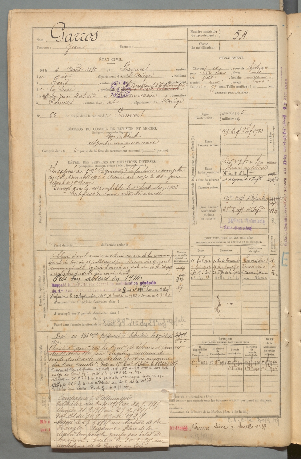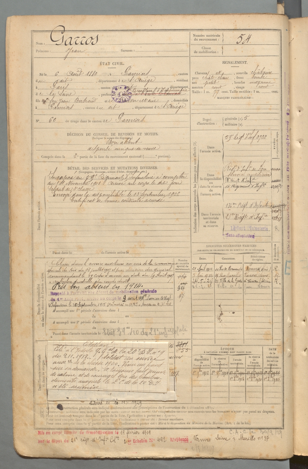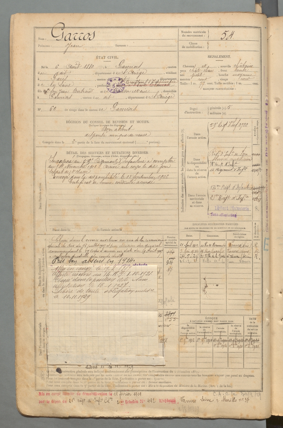 | Garros | Jean | FOIX | 129 W 2 | 1900 | Pamiers | Paris | 54 |