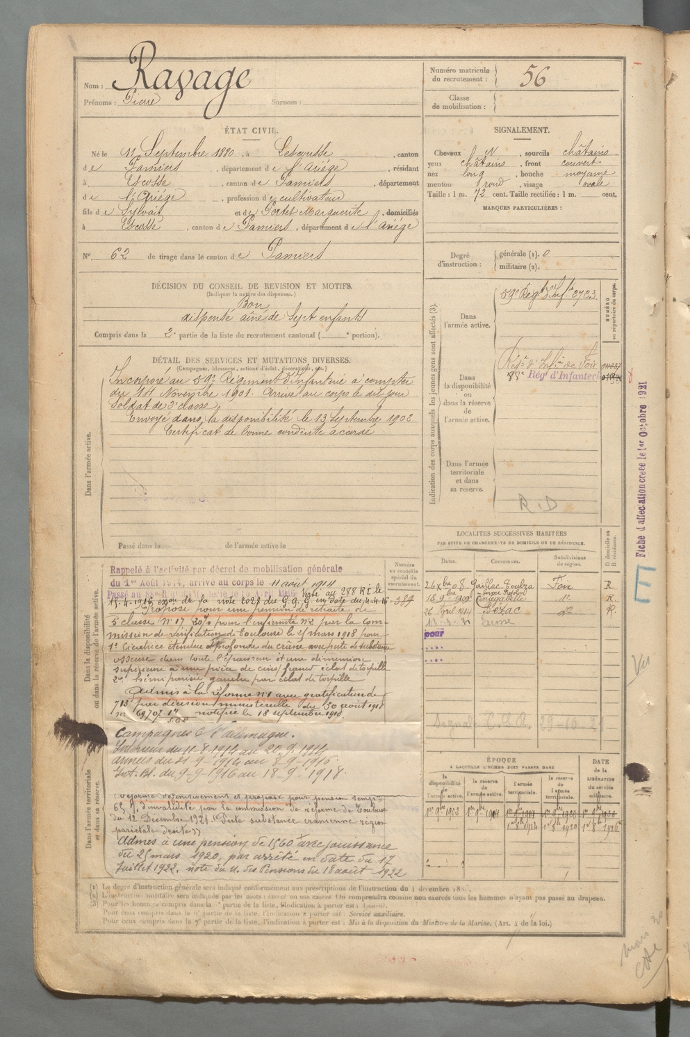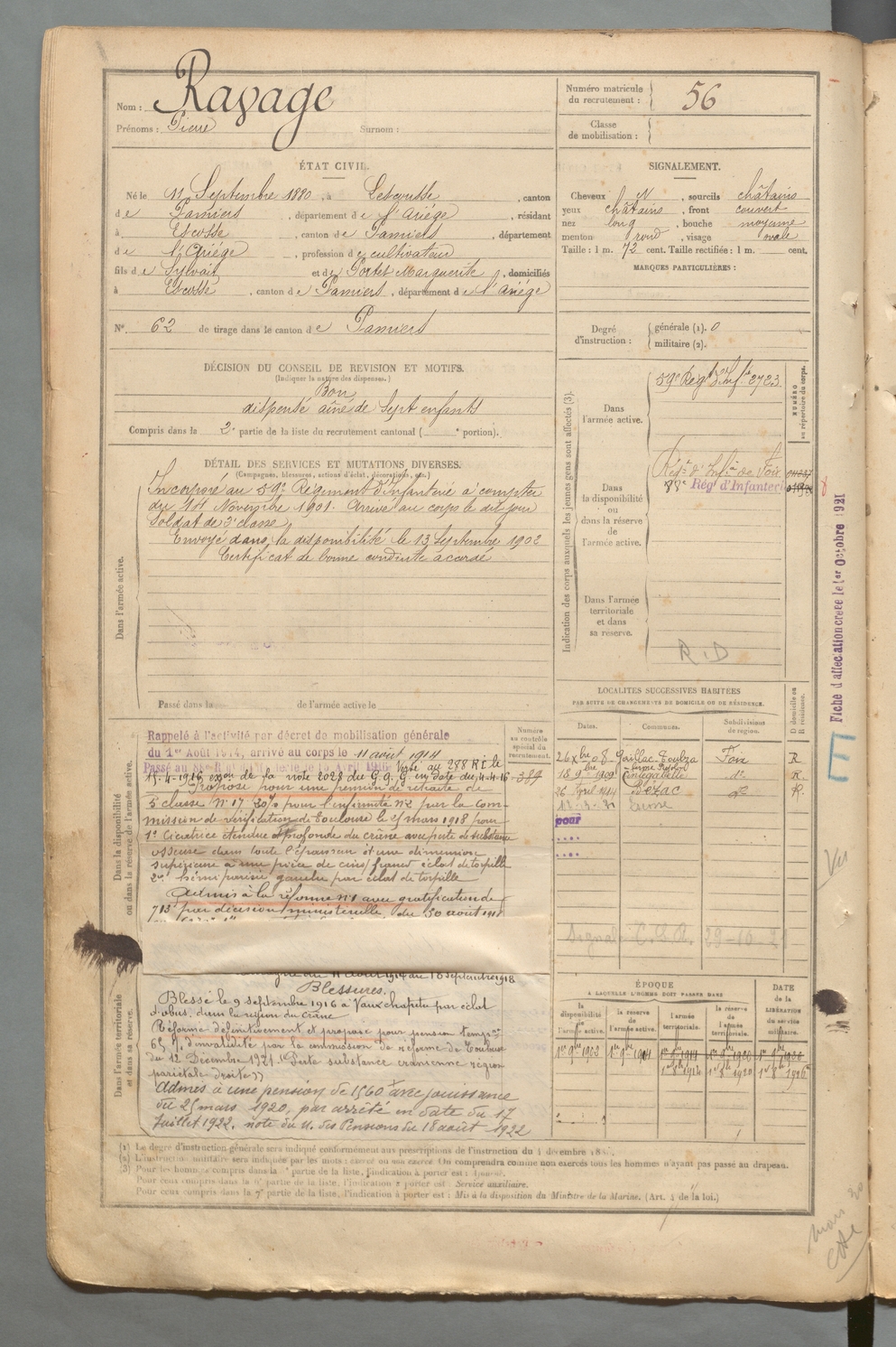 | Ravage | Pierre | FOIX | 129 W 2 | 1900 | Lescousse | Escosse | 56 |