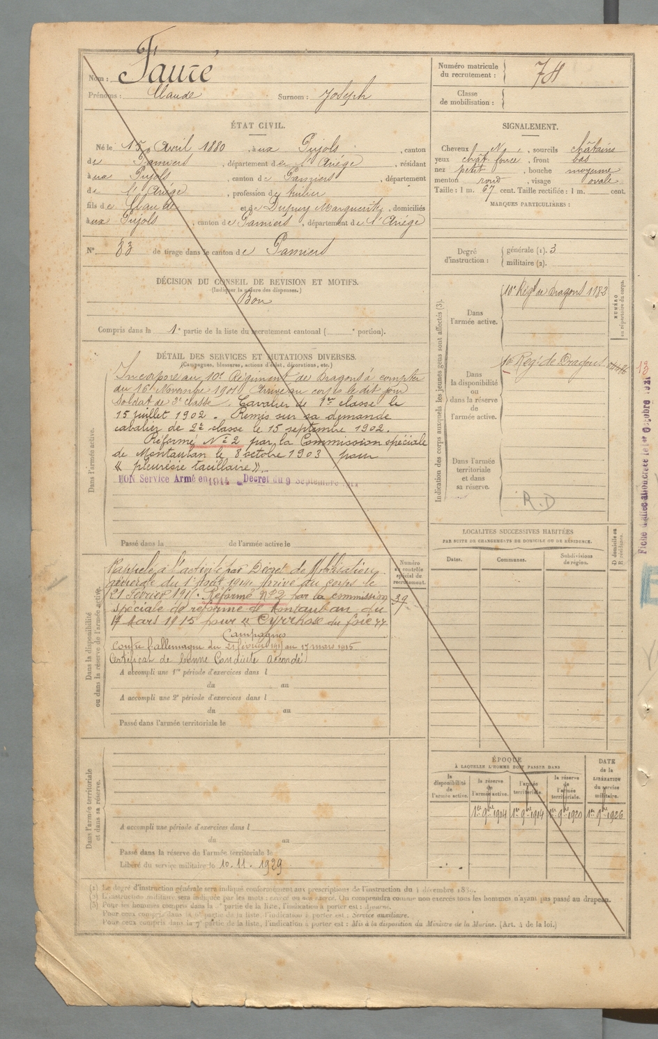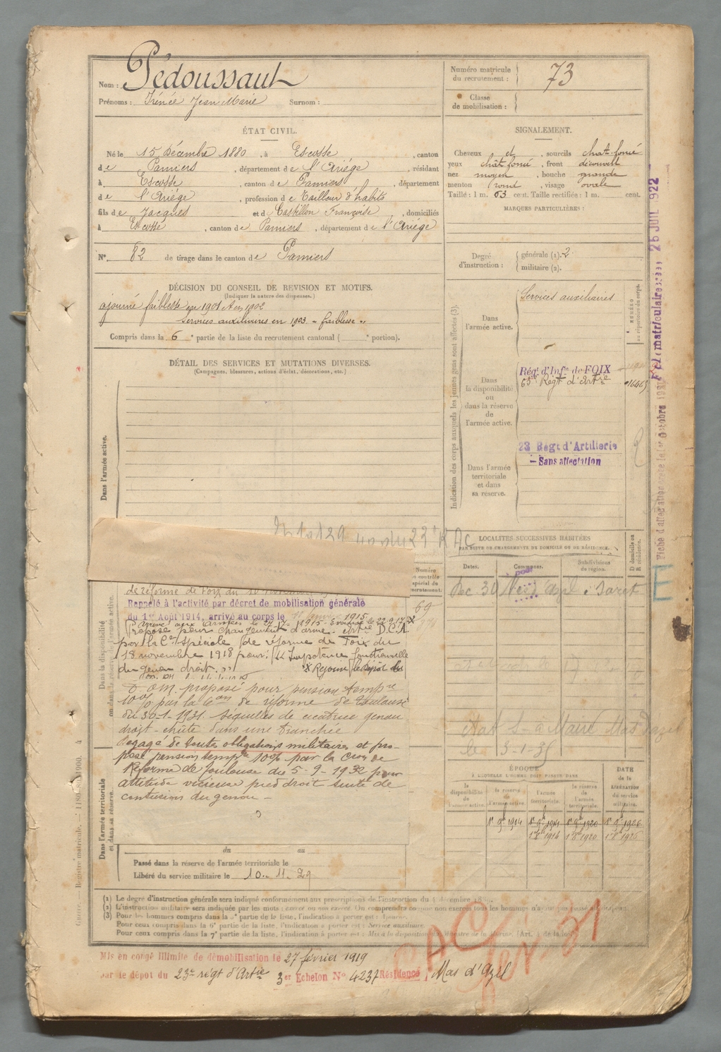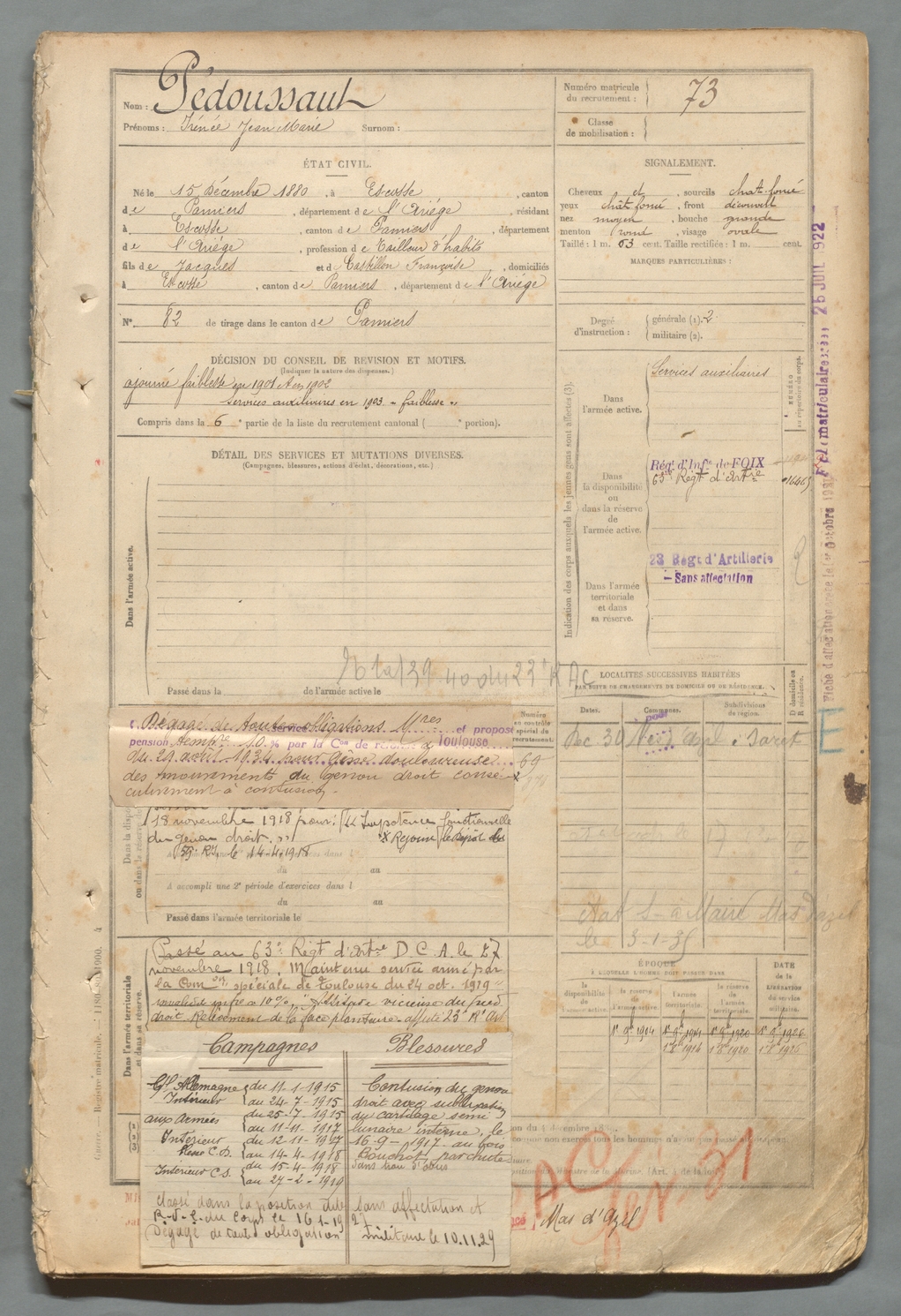 | Pédoussaut | Irénée Jean Marie | FOIX | 129 W 2 | 1900 | Escosse | Escosse | 73 |