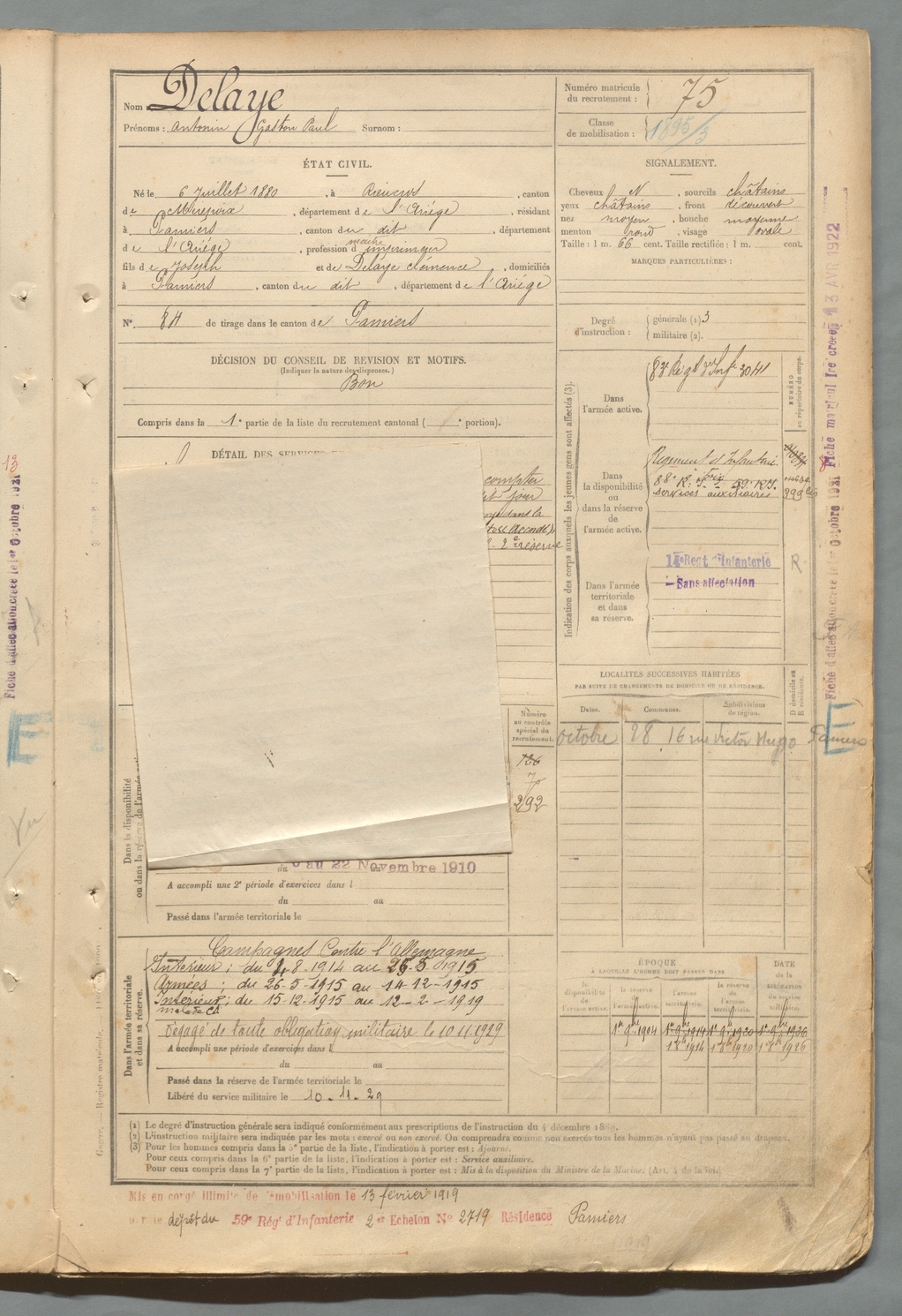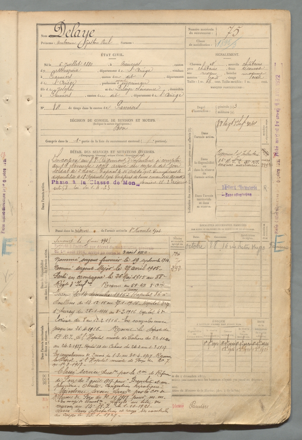 | Delaye | Antonin Gaston Paul | FOIX | 129 W 2 | 1900 | Rieucros | Pamiers | 75 |