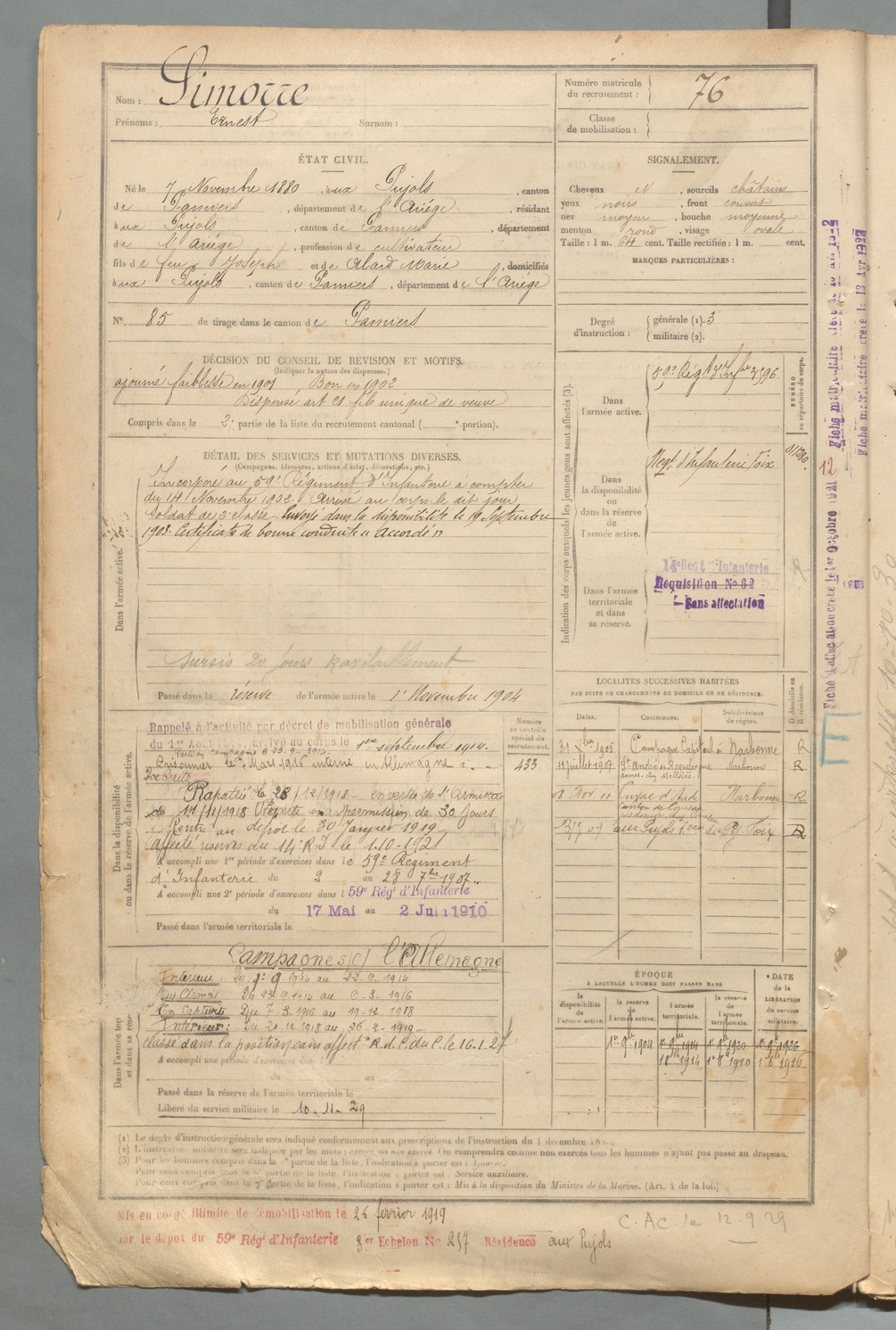 | Simorre | Ernest | FOIX | 129 W 2 | 1900 | Pujols (les) | Pujols (les) | 76 |