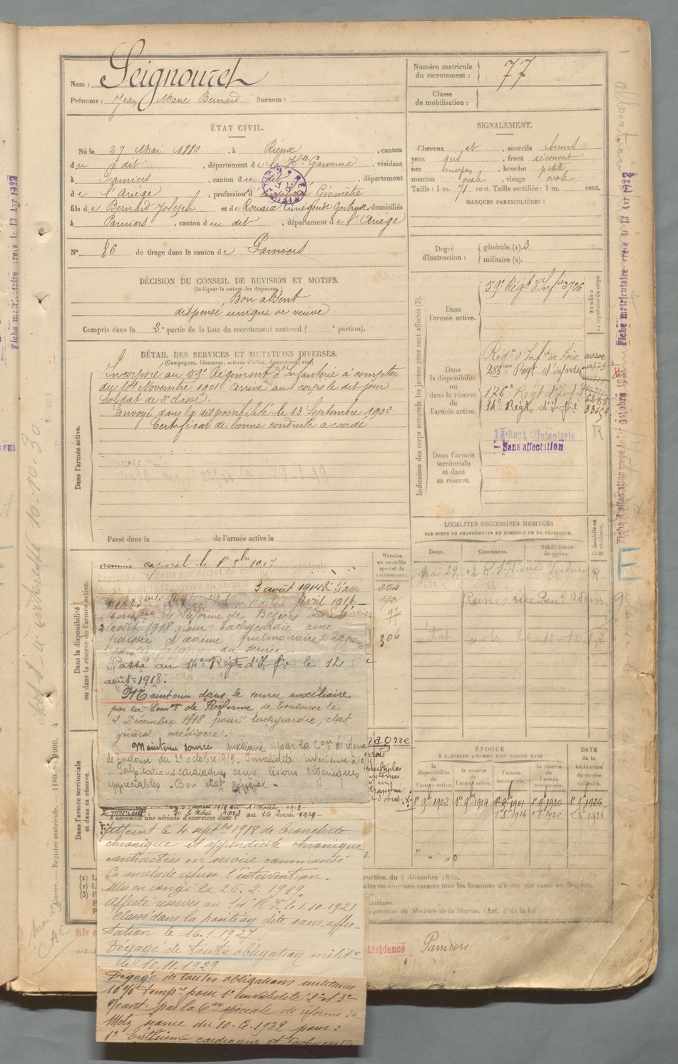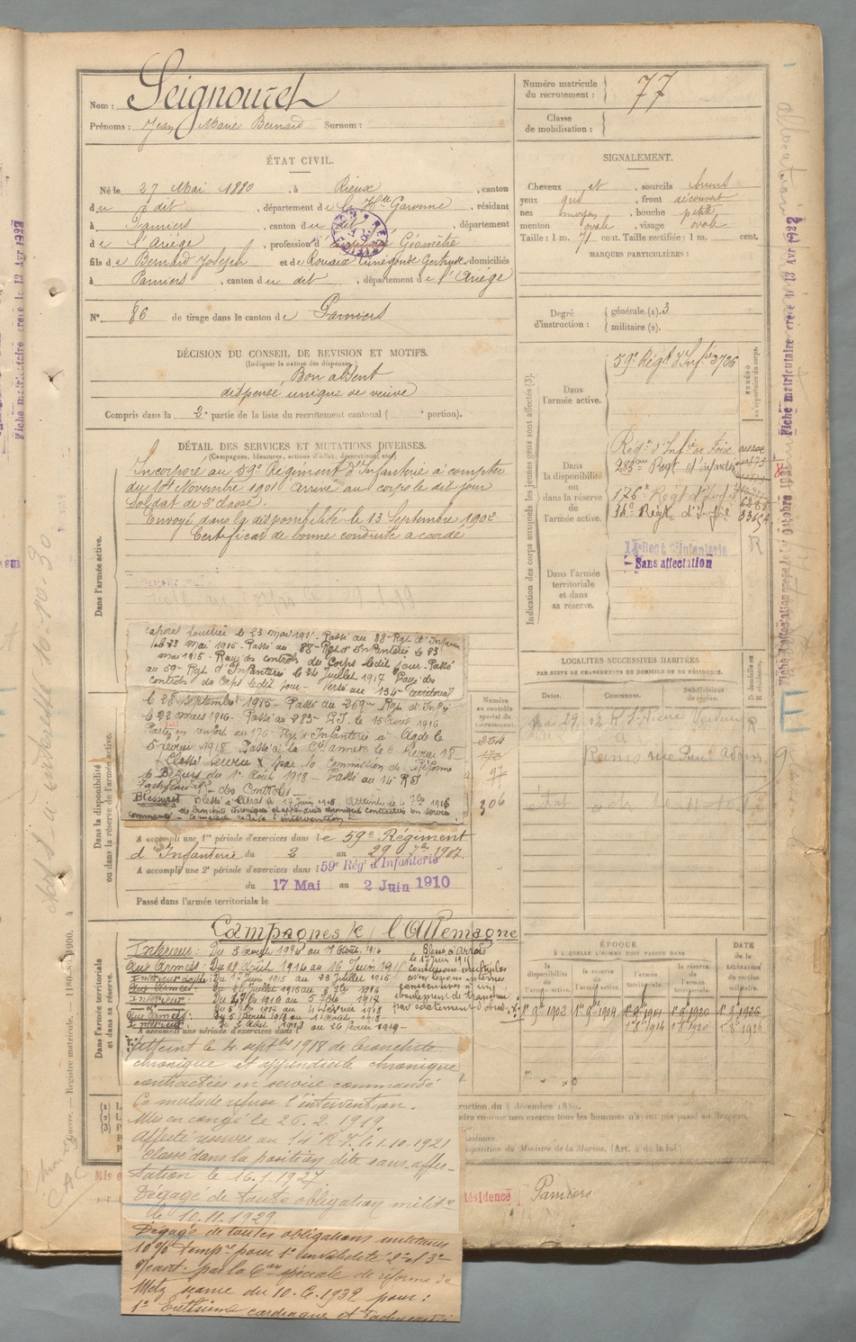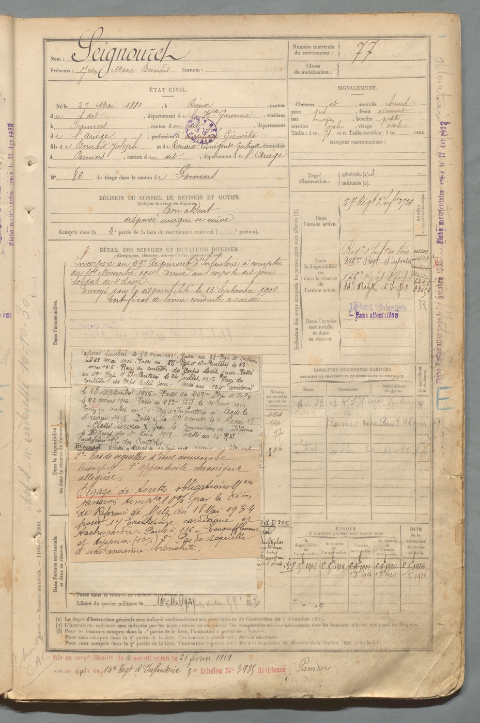 | Seignouret | Jean Marie Bernard | FOIX | 129 W 2 | 1900 | Rieux | Pamiers | 77 |