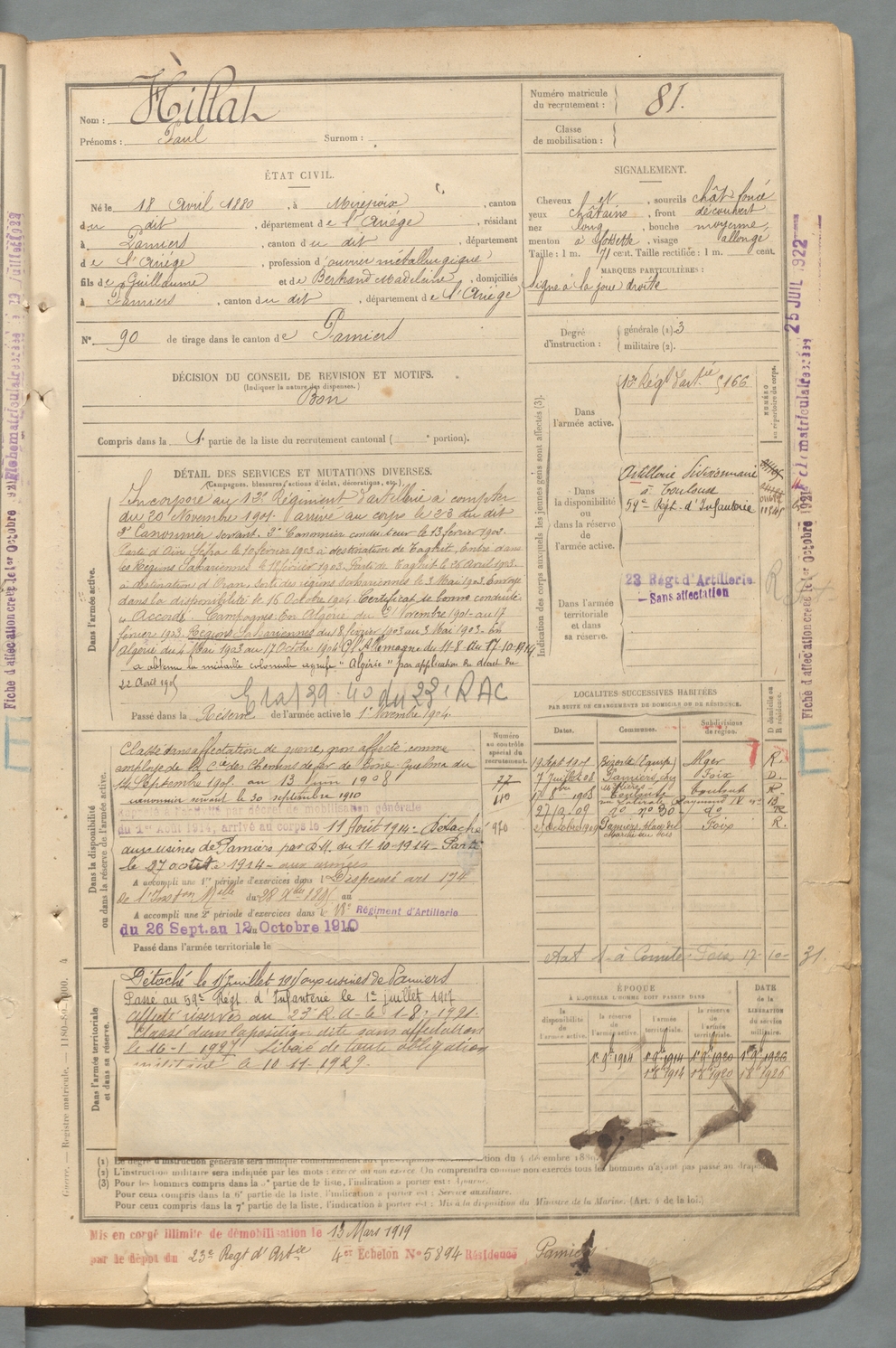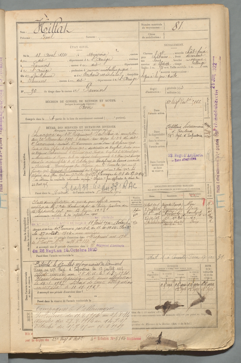 | Hillat | Paul | FOIX | 129 W 2 | 1900 | Mirepoix | Pamiers | 81 |
