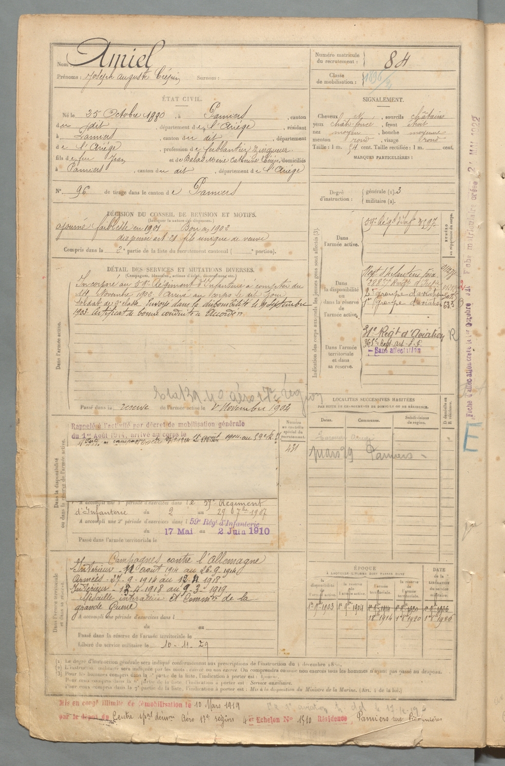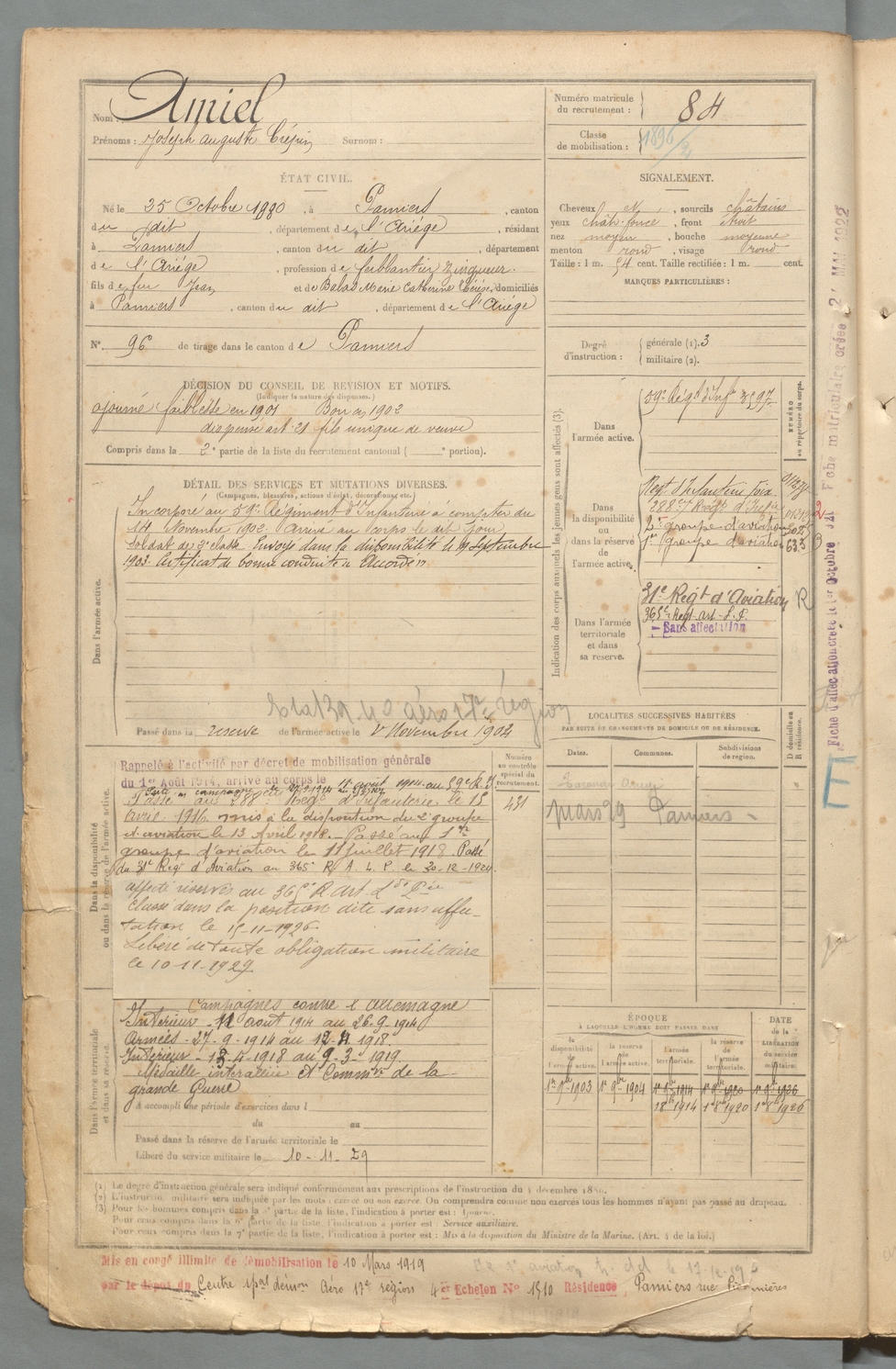 | Amiel | Joseph Auguste Crépin | FOIX | 129 W 2 | 1900 | Pamiers | Pamiers | 84 |