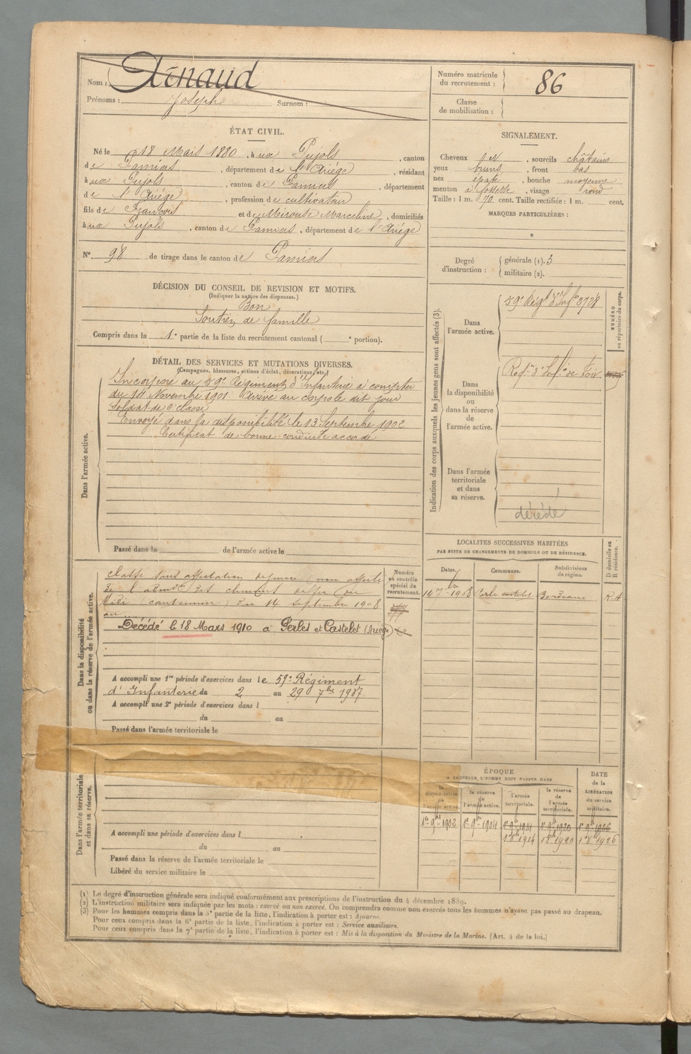 | Arnaud | Joseph | FOIX | 129 W 2 | 1900 | Pujols (les) | Pujols (les) | 86 |