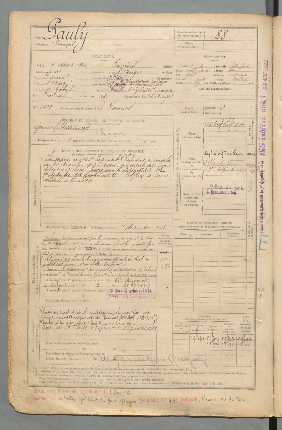 | Pauly | François | FOIX | 129 W 2 | 1900 | Pamiers | Pamiers | 88 |