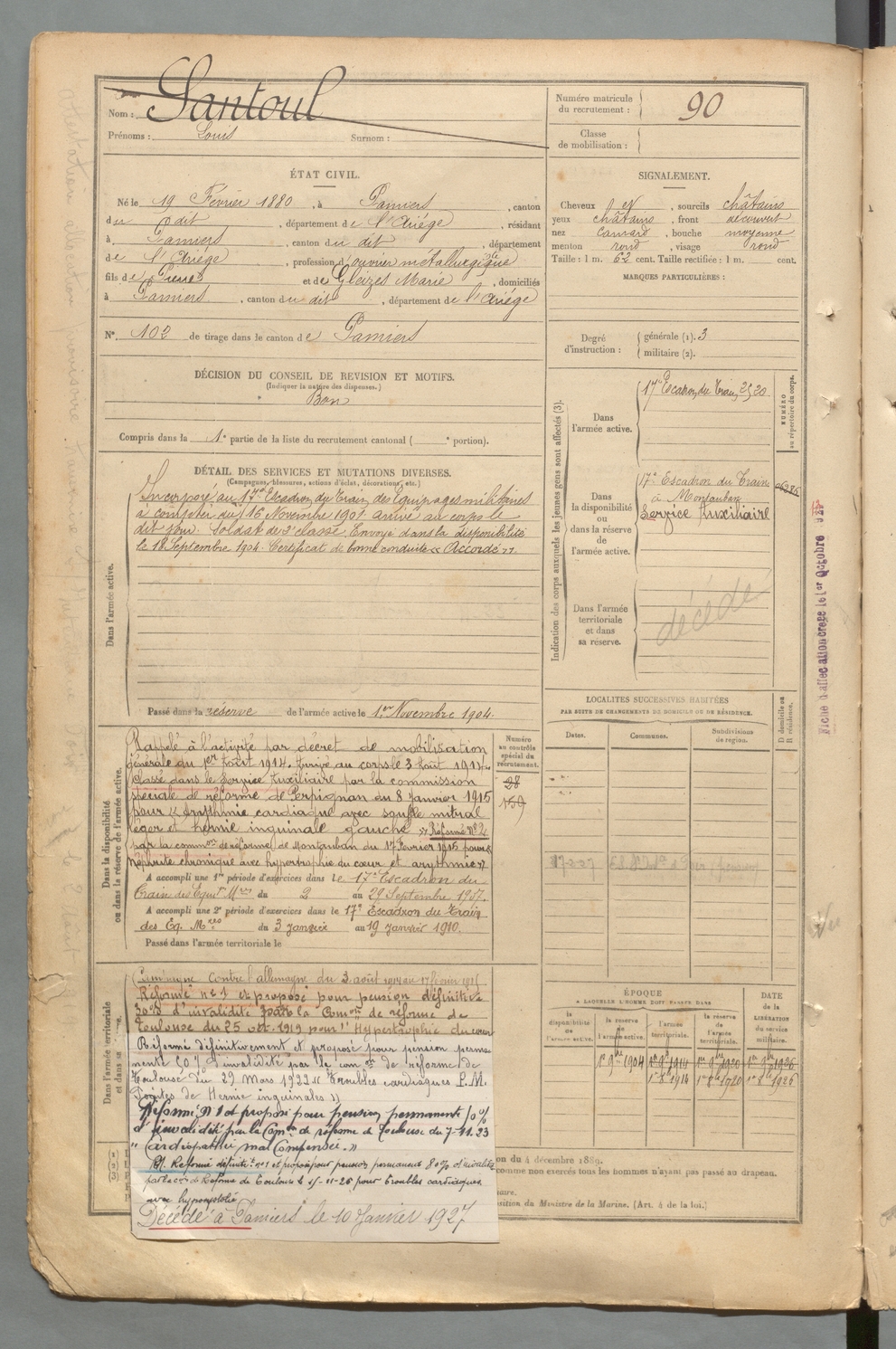 | Santoul | Louis | FOIX | 129 W 2 | 1900 | Pamiers | Pamiers | 90 |