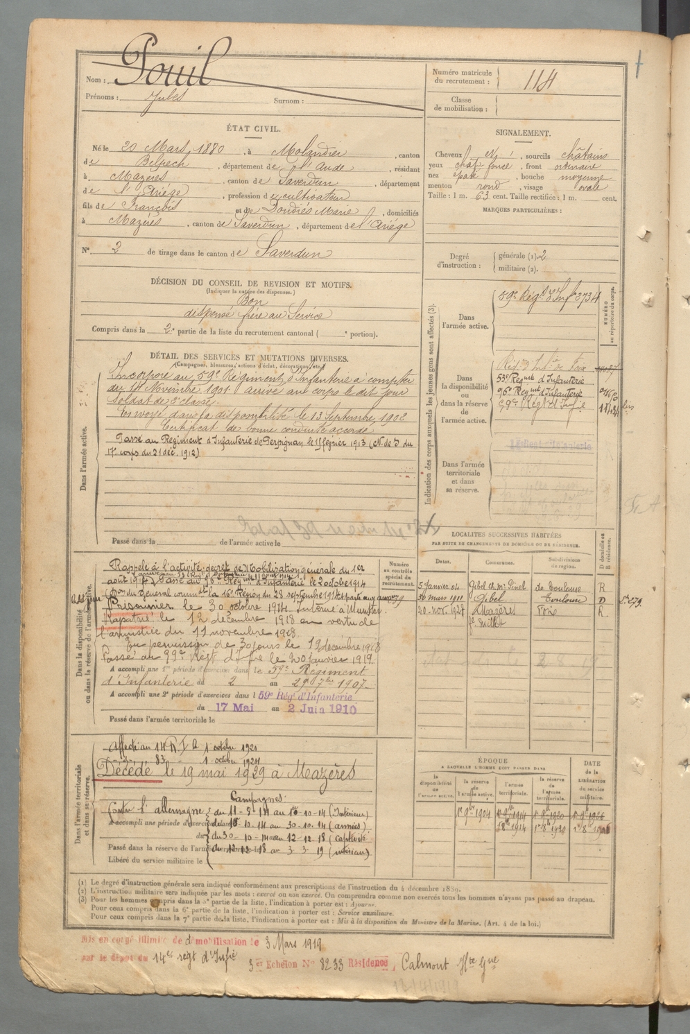 | Pouil | Jules | FOIX | 129 W 2 | 1900 | Molandier | Mazères | 114 |