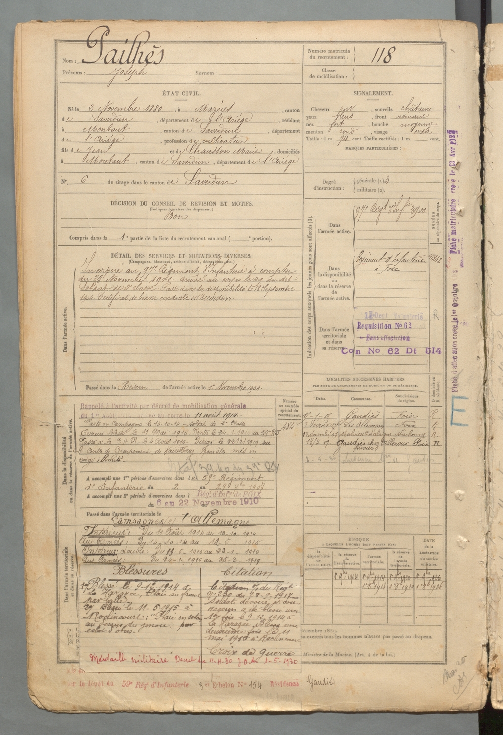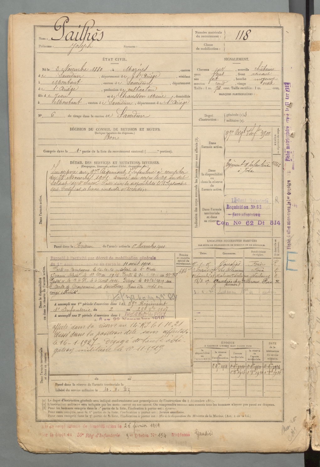 | Pailhès | Joseph | FOIX | 129 W 2 | 1900 | Mazères | Montaut | 118 |