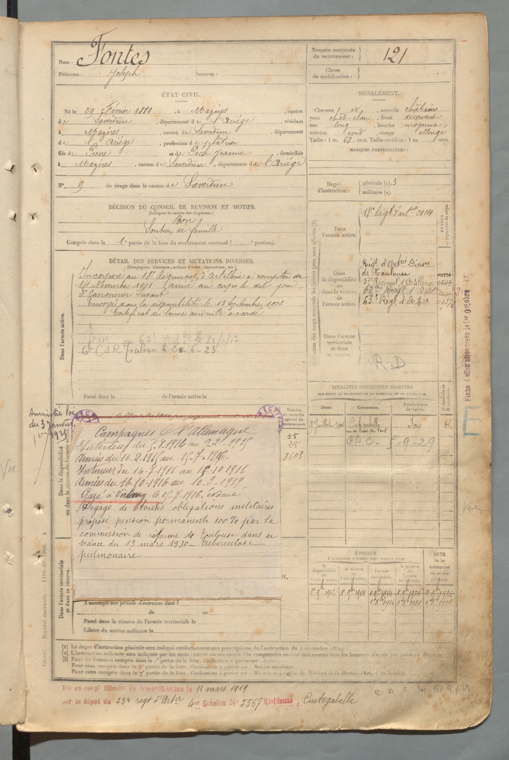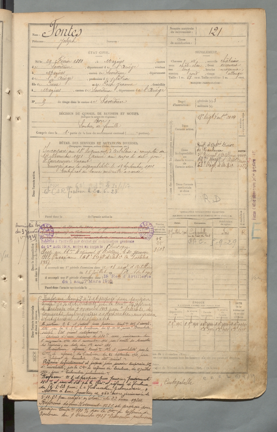 | Fontes | Joseph | FOIX | 129 W 2 | 1900 | Mazères | Mazères | 121 |