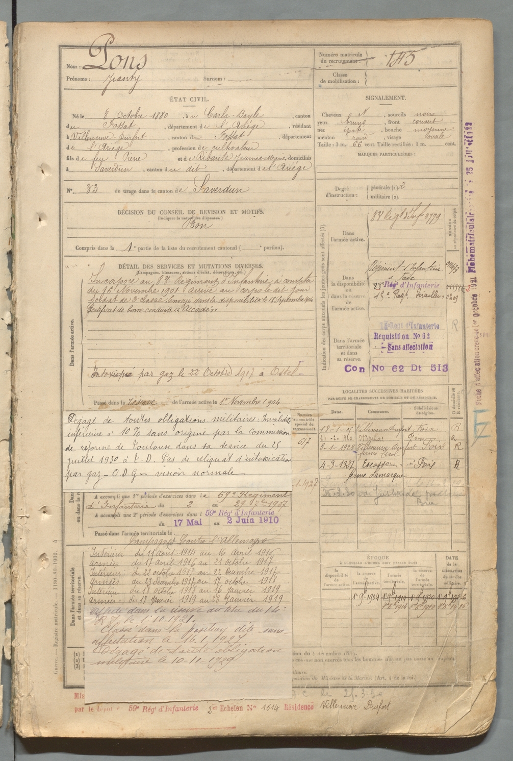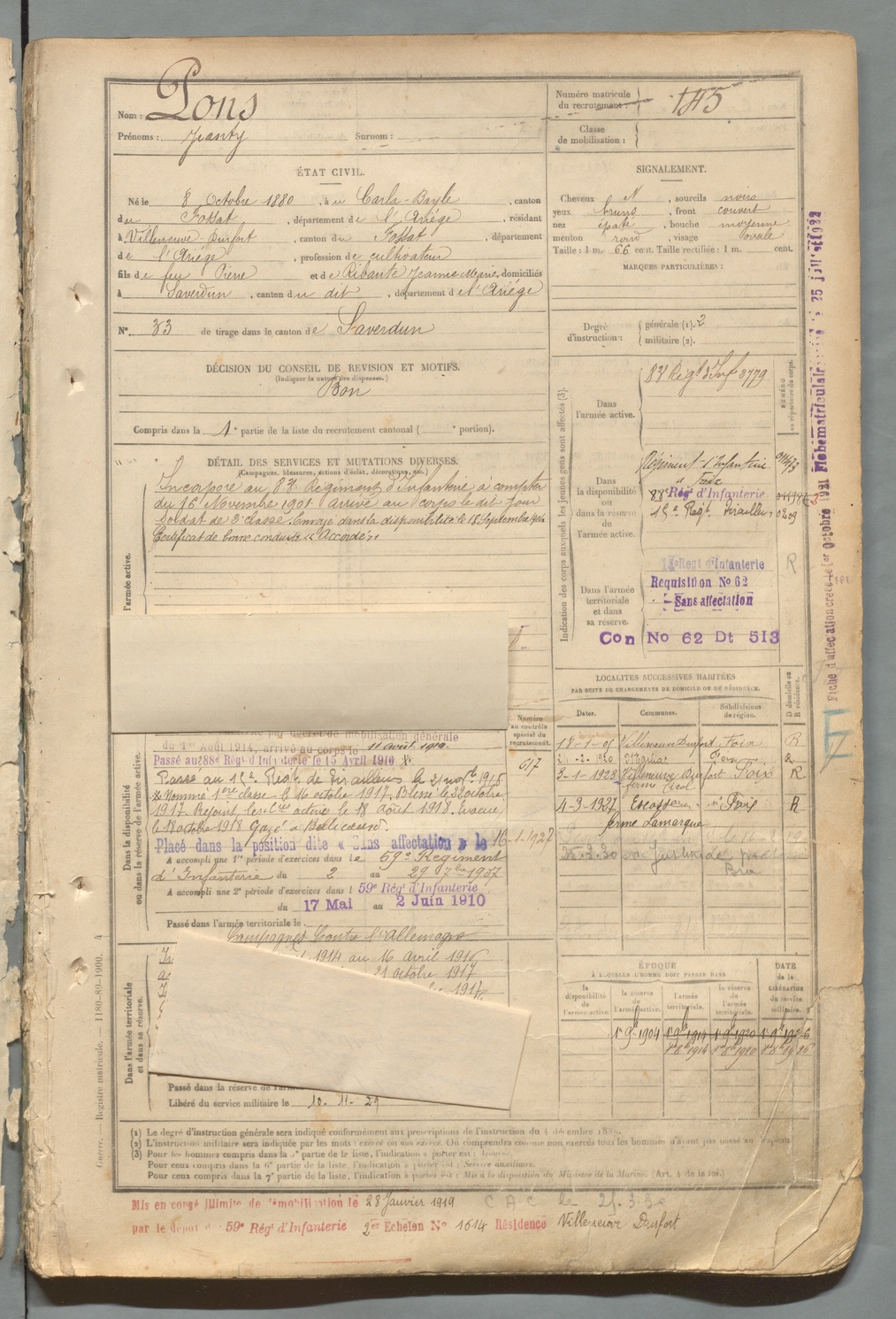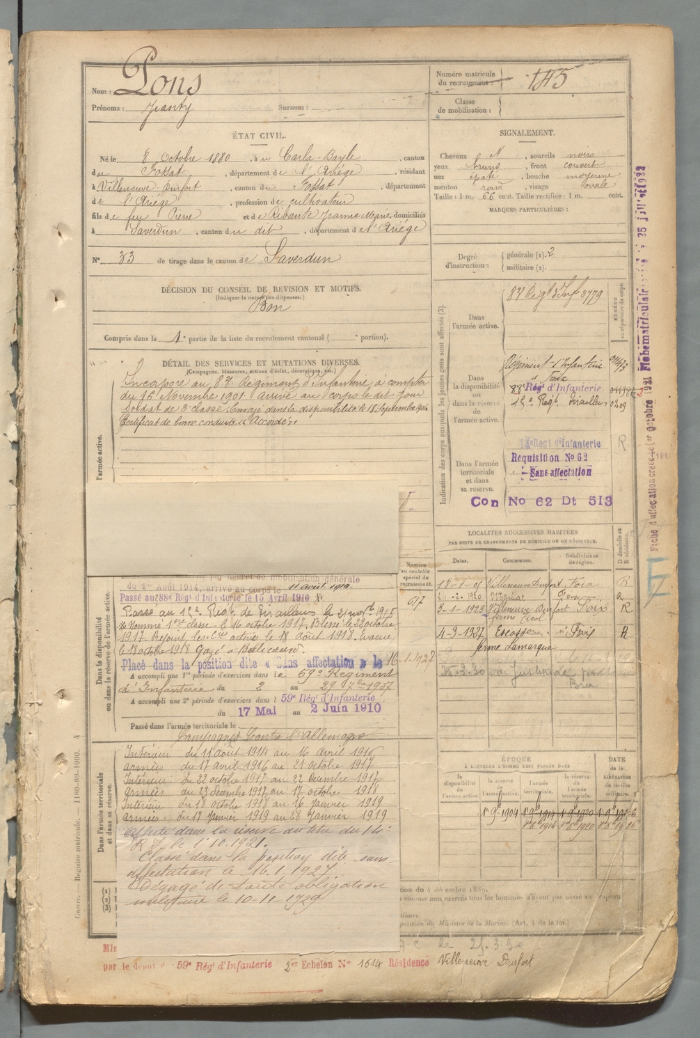 | Pons | Jeanty | FOIX | 129 W 2 | 1900 | Carla-Bayle (Le) | Villeneuve-Dufort | 145 |