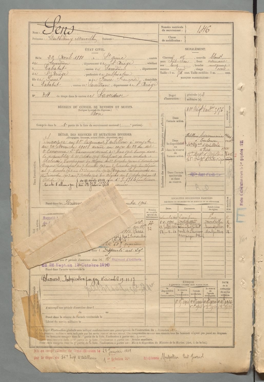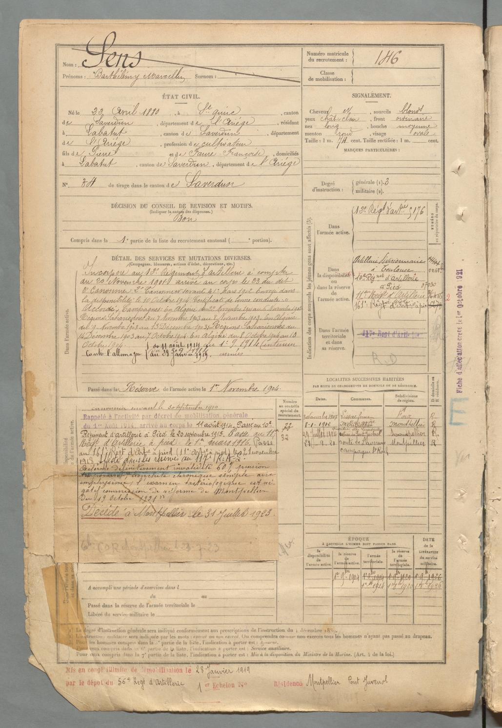 | Sens | Barthélémy Marcellin | FOIX | 129 W 2 | 1900 | Saint-Quirc | Labatut | 146 |