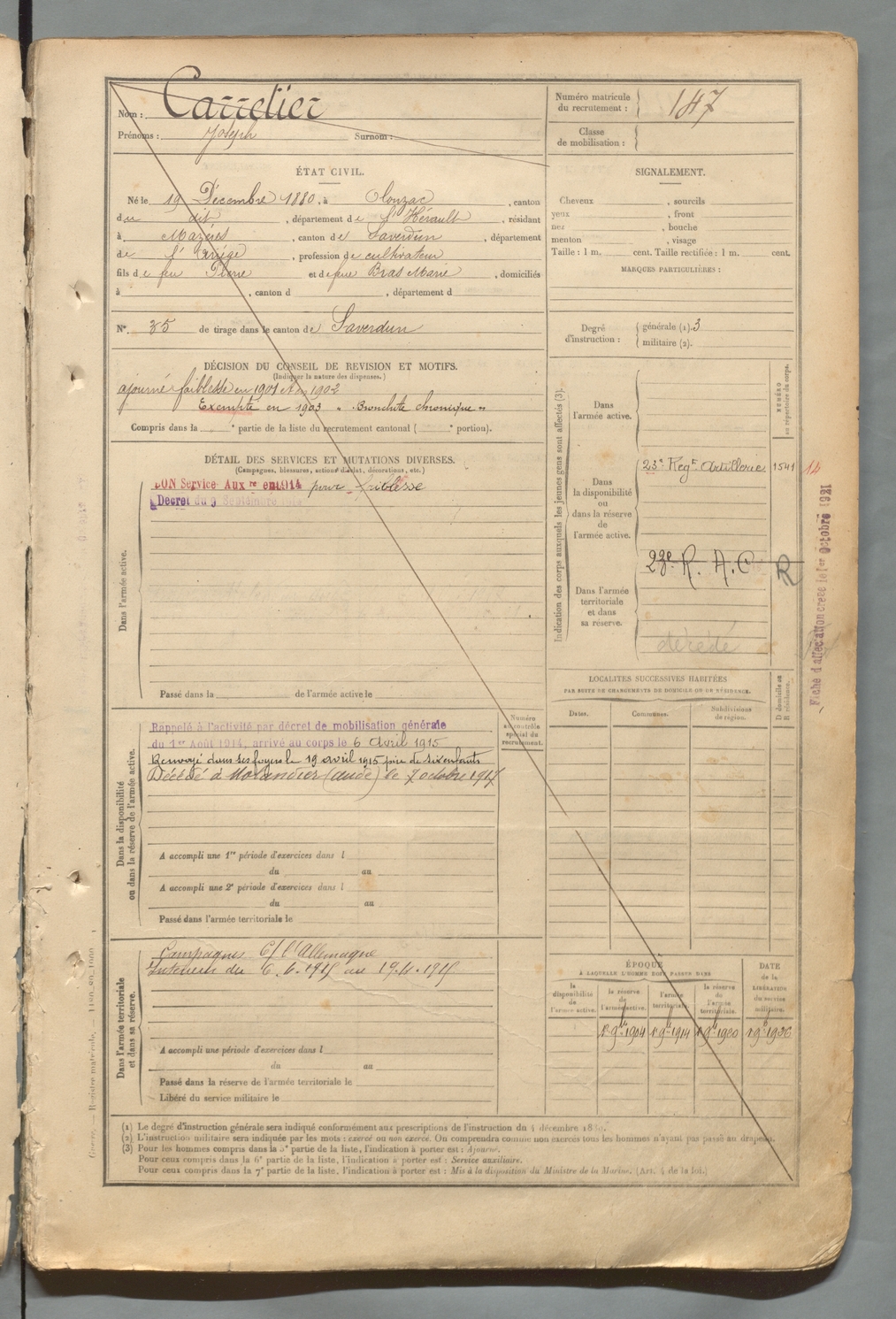 | Carretier | Joseph | FOIX | 129 W 2 | 1900 | Olonzac | Mazères | 147 |