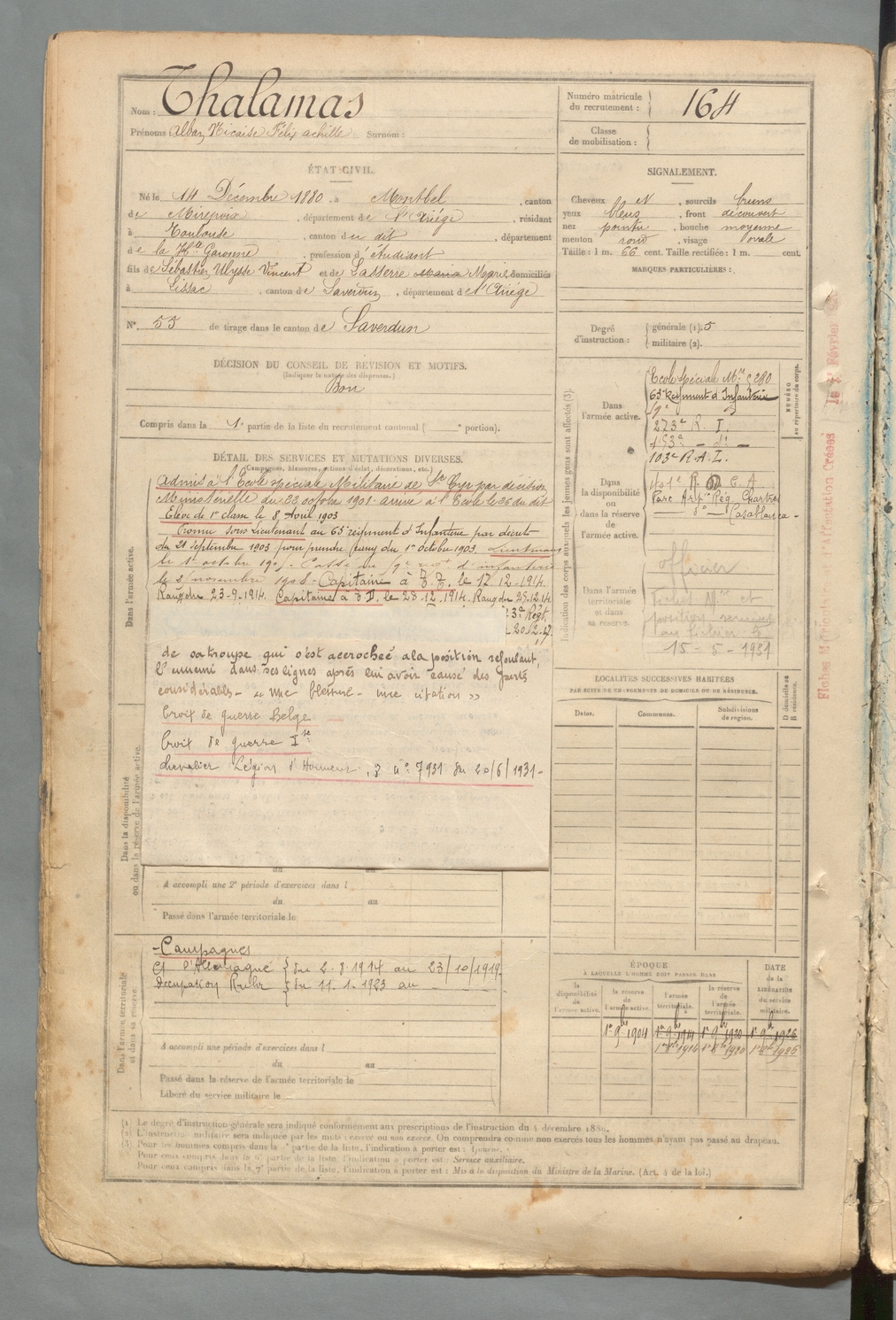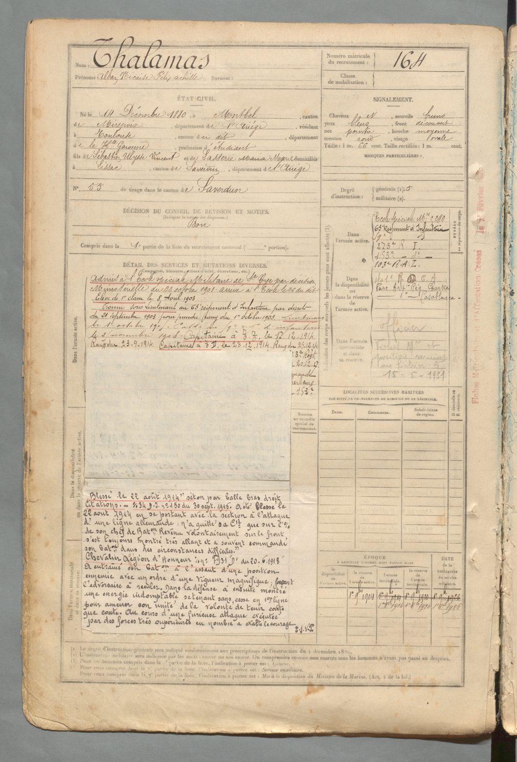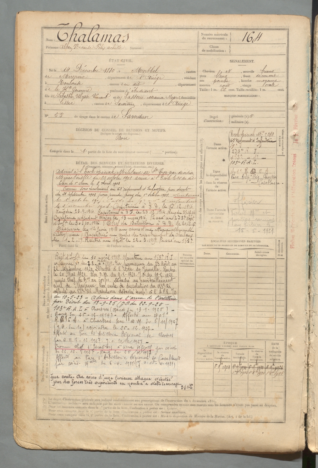 | Thalamas | Alban Nicaise Félix Achille | FOIX | 129 W 2 | 1900 | Montbel | Toulouse | 164 |