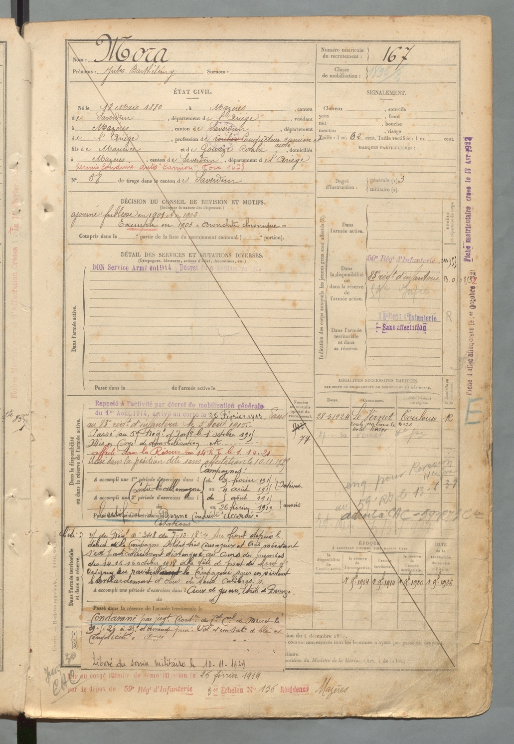 | Mora | Jules Barthélémy | FOIX | 129 W 2 | 1900 | Mazères | Mazères | 167 |